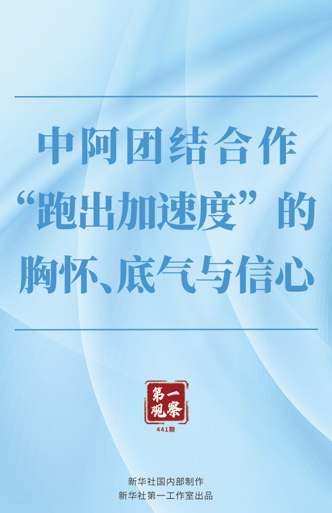 “加速度”一詞,預(yù)示著中阿關(guān)系發(fā)展提速升級(jí)的美好前景,彰顯著中阿雙方攜手奮發(fā)的昂揚(yáng)狀態(tài),賦予變亂交織的世界積極正向力量,令人備受鼓舞。