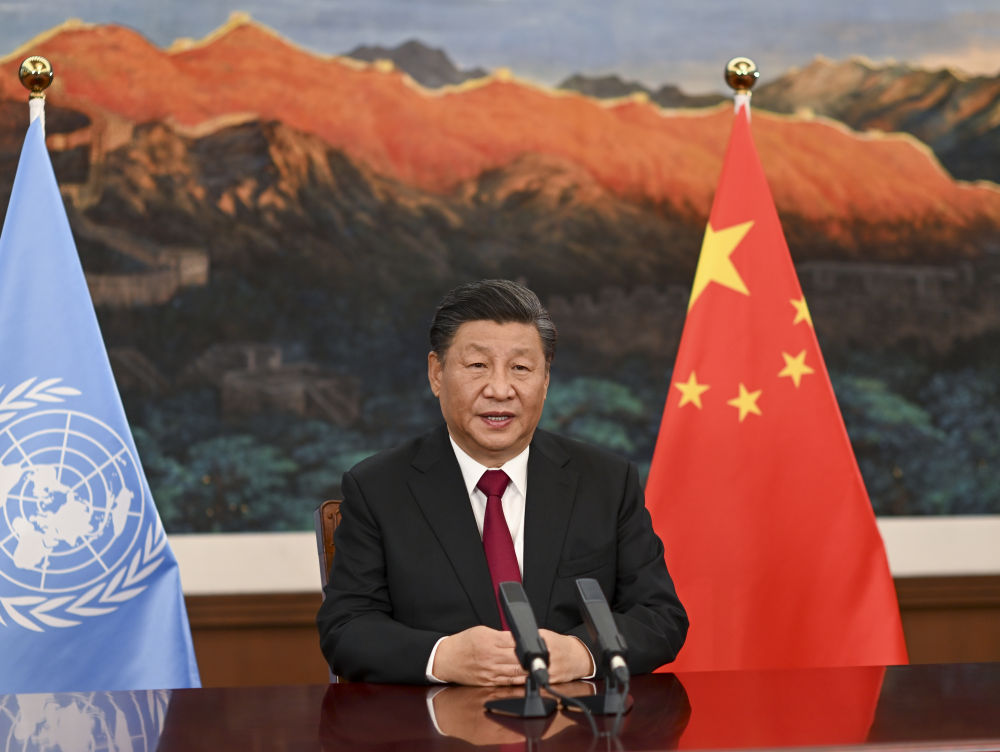 2021年10月12日,習(xí)近平主席以視頻方式出席《生物多樣性公約》第十五次締約方大會(huì)領(lǐng)導(dǎo)人峰會(huì)并發(fā)表主旨講話。 新華社記者 李學(xué)仁 攝