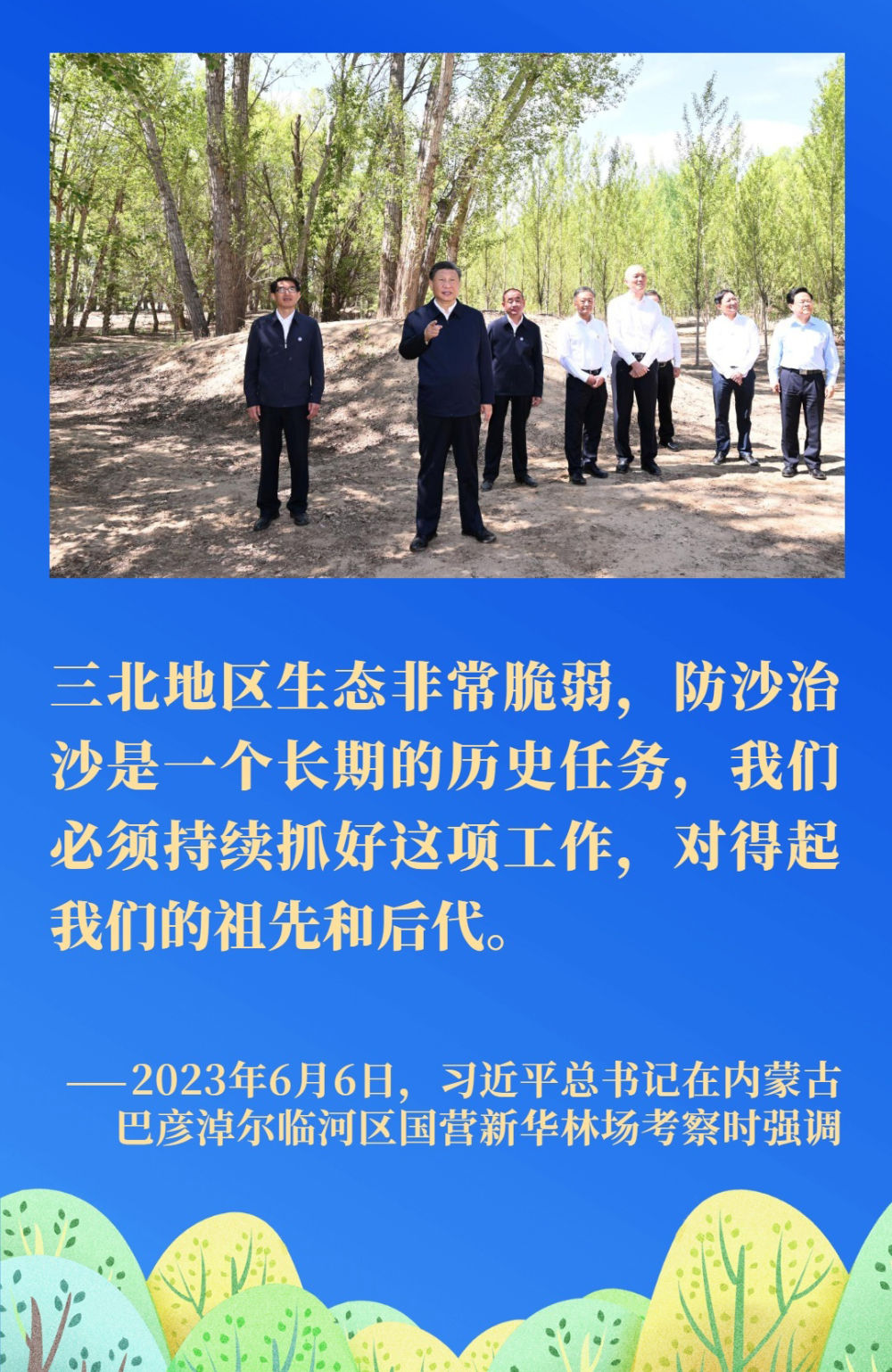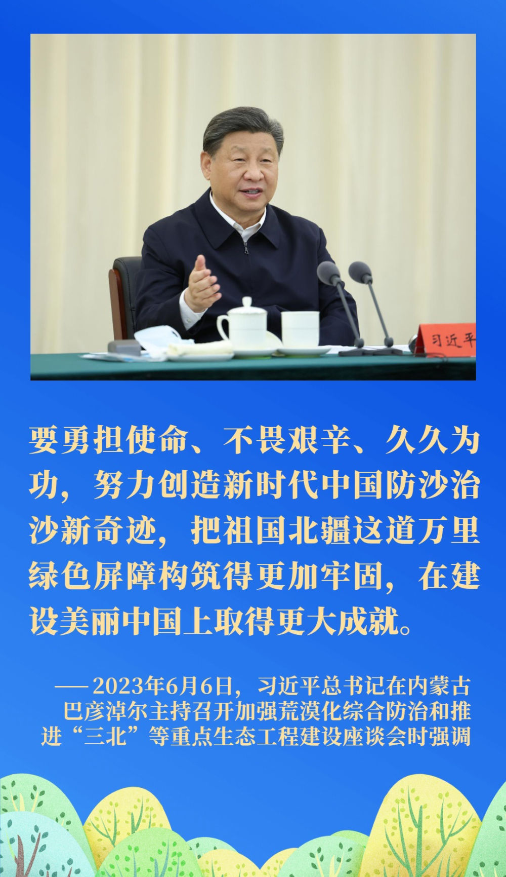 荒漠化是影響人類生存和發(fā)展的全球性重大生態(tài)問題。我國(guó)是世界上荒漠化最嚴(yán)重的國(guó)家之一。習(xí)近平總書記一直將防沙治沙牽掛在心,多次對(duì)荒漠化防治、推進(jìn)“三北”重點(diǎn)生態(tài)工程建設(shè)等工作作出重要指示。