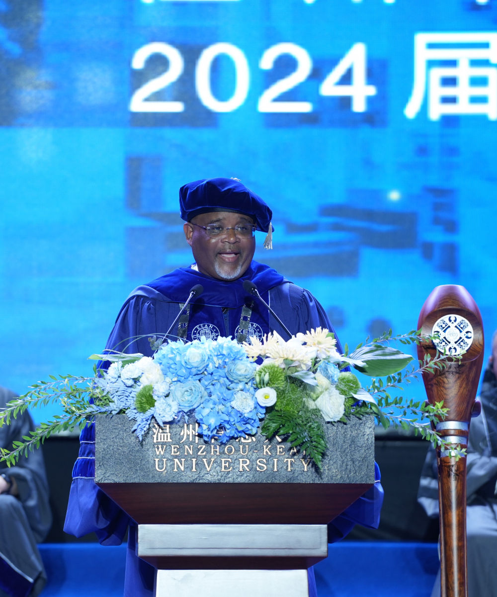 6月7日,美國(guó)肯恩大學(xué)校長(zhǎng)拉蒙·雷波列特在溫州肯恩大學(xué)畢業(yè)典禮上致辭。(受訪(fǎng)者供圖)