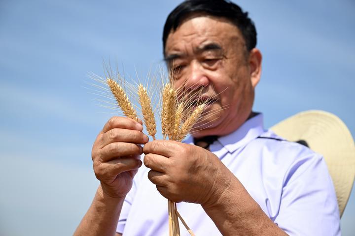 日頭正盛,71歲的種糧大戶徐淙祥深入田間,和農(nóng)技專家們一起為試驗(yàn)麥種測(cè)產(chǎn)?!八氪笞讯嗔o枬M,又是一個(gè)豐收年!”徐淙祥高興地說。