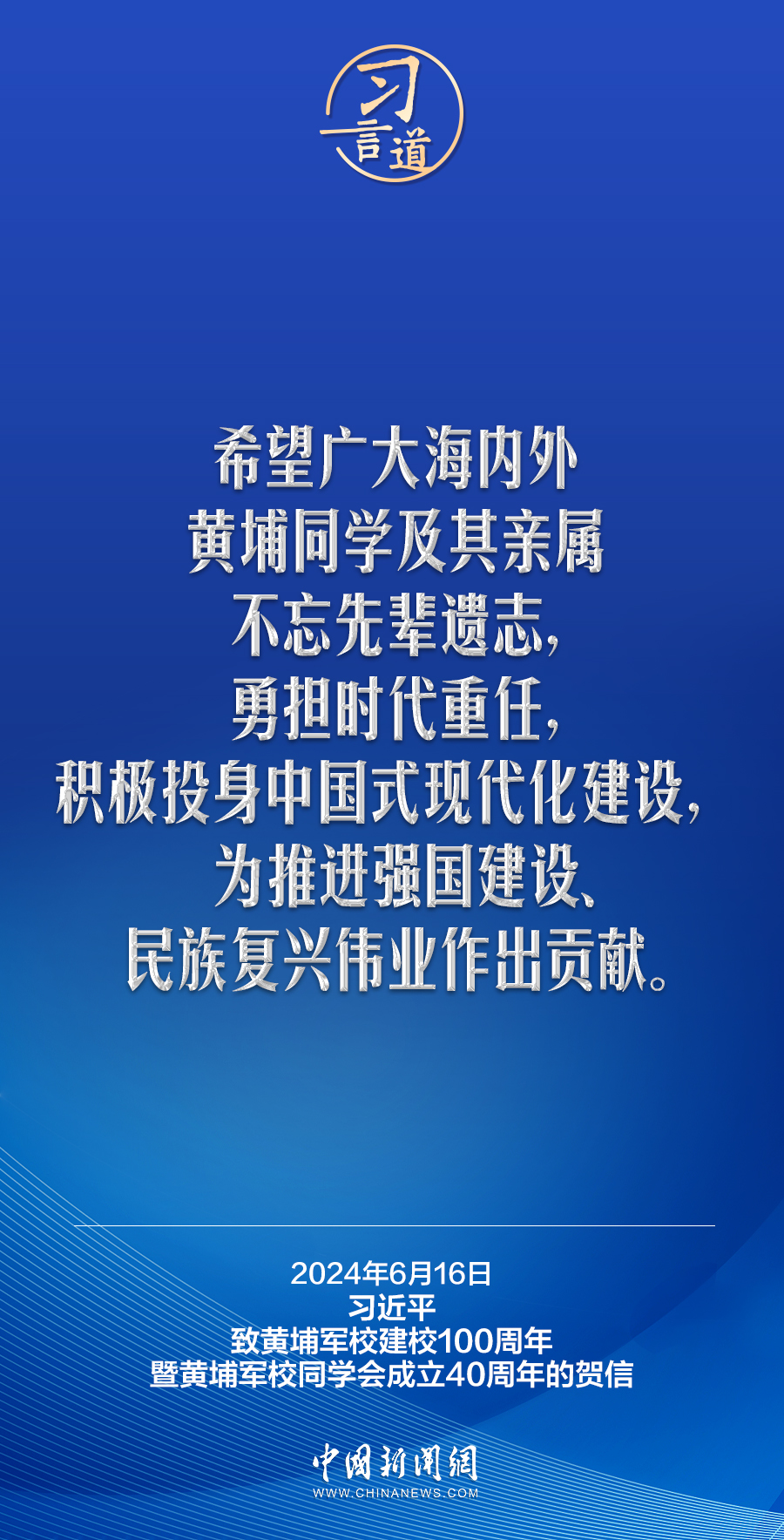 在黃埔軍校建校100周年暨黃埔軍校同學(xué)會(huì)成立40周年之際,中共中央總書記、國家主席、中央軍委主席習(xí)近平發(fā)來賀信,代表中共中央向黃埔軍校同學(xué)會(huì)表示熱烈祝賀,向廣大海內(nèi)外黃埔同學(xué)及其親屬致以誠摯問候。習(xí)近平指出——