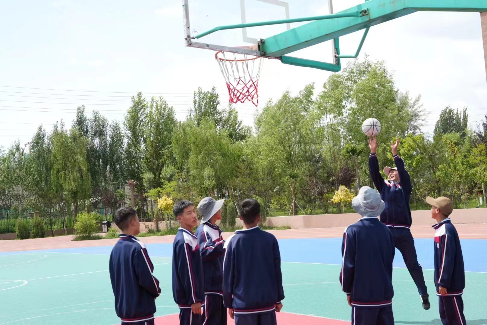 圖為果洛西寧民族中學的學生在籃球場揮灑汗水。喬 棟攝。