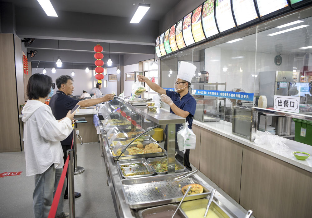 6月20日,寧夏銀川市金鳳區(qū)長(zhǎng)城花園社區(qū)居民在社區(qū)食堂買(mǎi)早餐。
