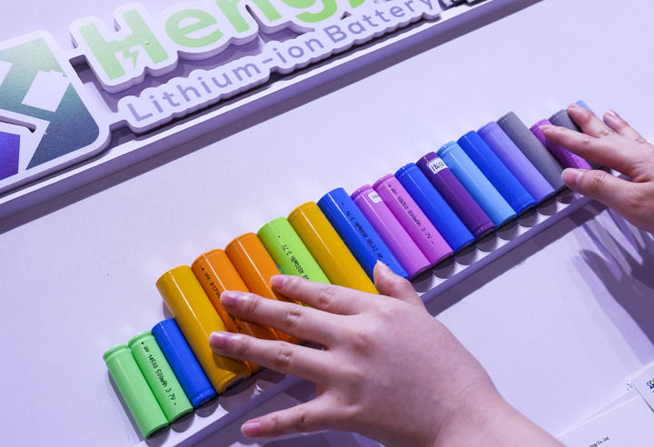 參展商在第135屆廣交會新能源展區(qū)布置鋰電池展品(2024年4月15日攝)。