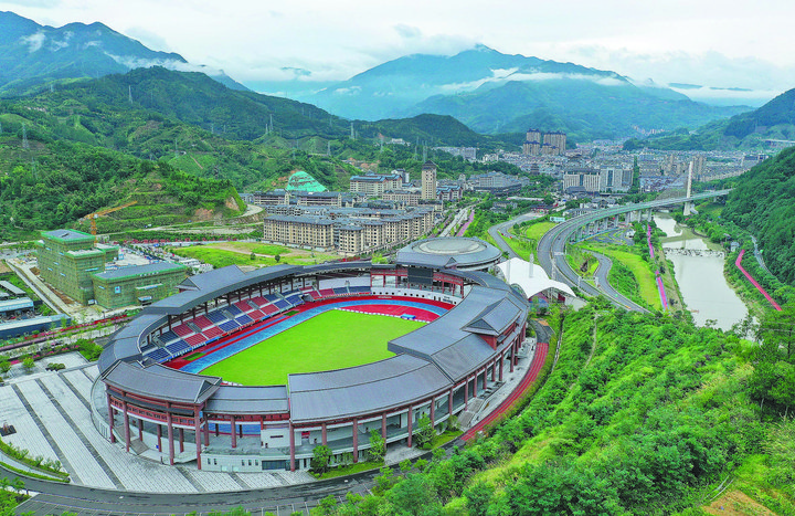 集籃球館、足球場、氣排球場、網(wǎng)球場等設施于一體的景寧體育公園。記者 林云龍 徐彥 葉錦霞 攝