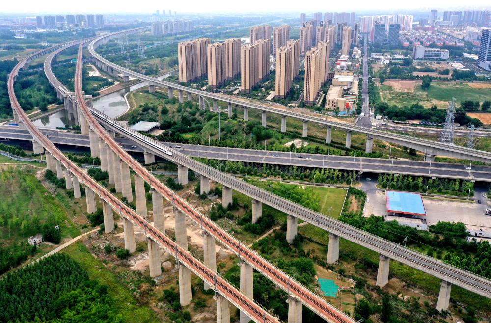 2024年5月30日,一列動車組列車行駛在鄭州東站附近的線路上。(新華社發(fā))