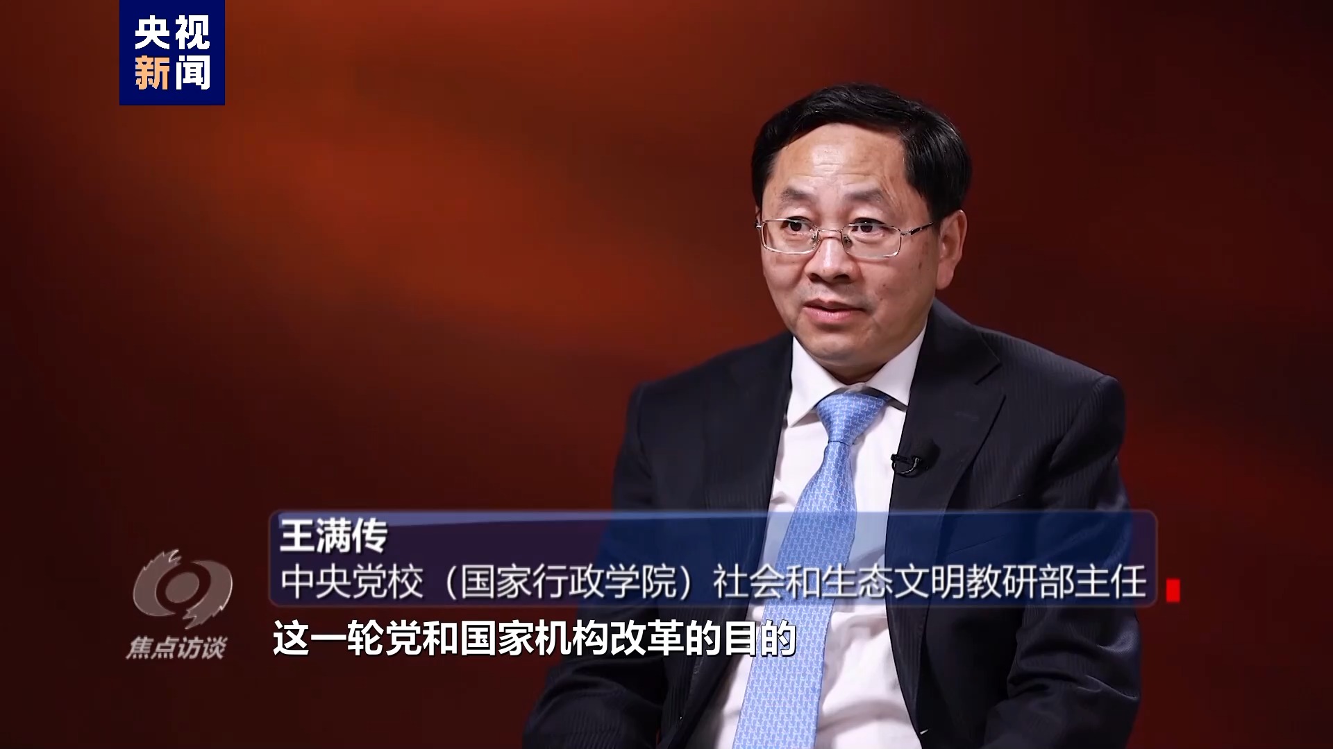 中央黨校(國(guó)家行政學(xué)院)社會(huì)和生態(tài)文明教研部主任 王滿傳:通過(guò)這一系列重要的舉措,達(dá)到了習(xí)近平總書記提出的這一輪黨和國(guó)家機(jī)構(gòu)改革的目的。就是推動(dòng)黨對(duì)社會(huì)主義現(xiàn)代化建設(shè)的領(lǐng)導(dǎo),在機(jī)構(gòu)設(shè)置上更加科學(xué)、在職能配置上更加優(yōu)化、在管理運(yùn)行上更加高效。