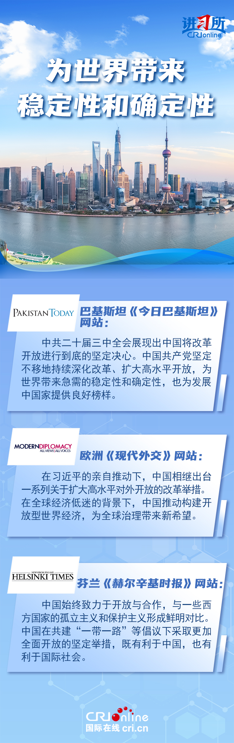中共二十屆三中全會(huì)審議通過的《中共中央關(guān)于進(jìn)一步全面深化改革、推進(jìn)中國式現(xiàn)代化的決定》強(qiáng)調(diào),必須堅(jiān)持對(duì)外開放基本國策,堅(jiān)持以開放促改革,建設(shè)更高水平開放型經(jīng)濟(jì)新體制,并對(duì)完善高水平對(duì)外開放體制機(jī)制提出重要改革措施。