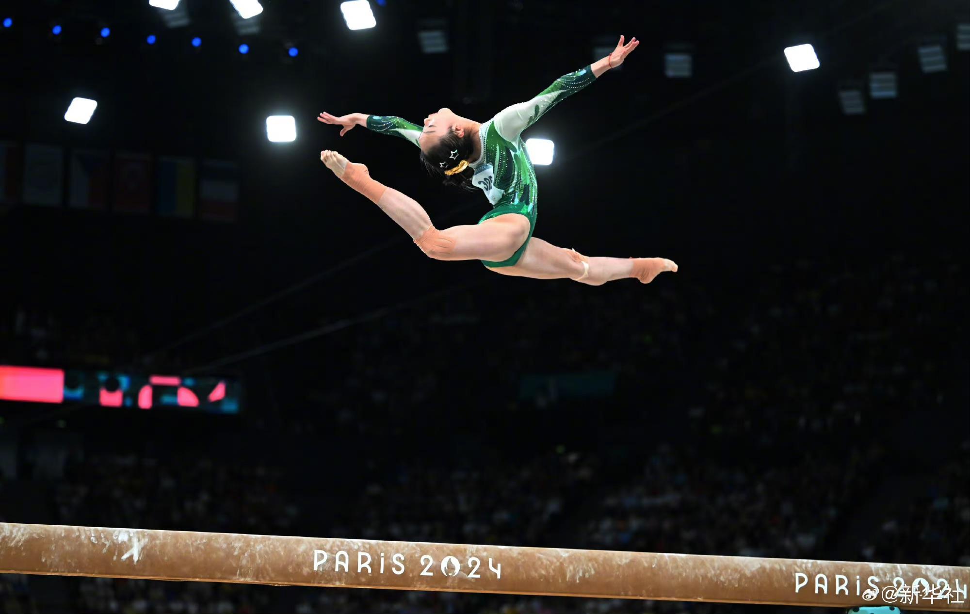 巴黎奧運(yùn)會體操女子平衡木比賽中,中國選手周雅琴的靚麗身姿