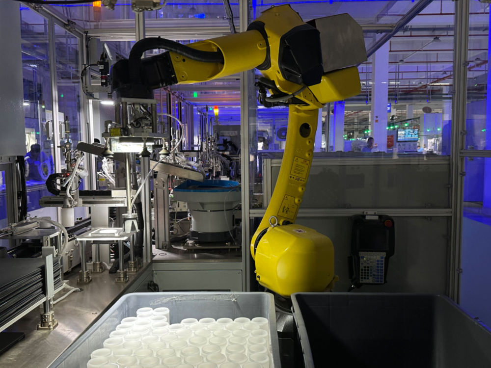 南安一家衛(wèi)浴企業(yè)生產(chǎn)線上,機(jī)械臂正在抓取過濾器零件。新華社記者 龐夢霞 攝