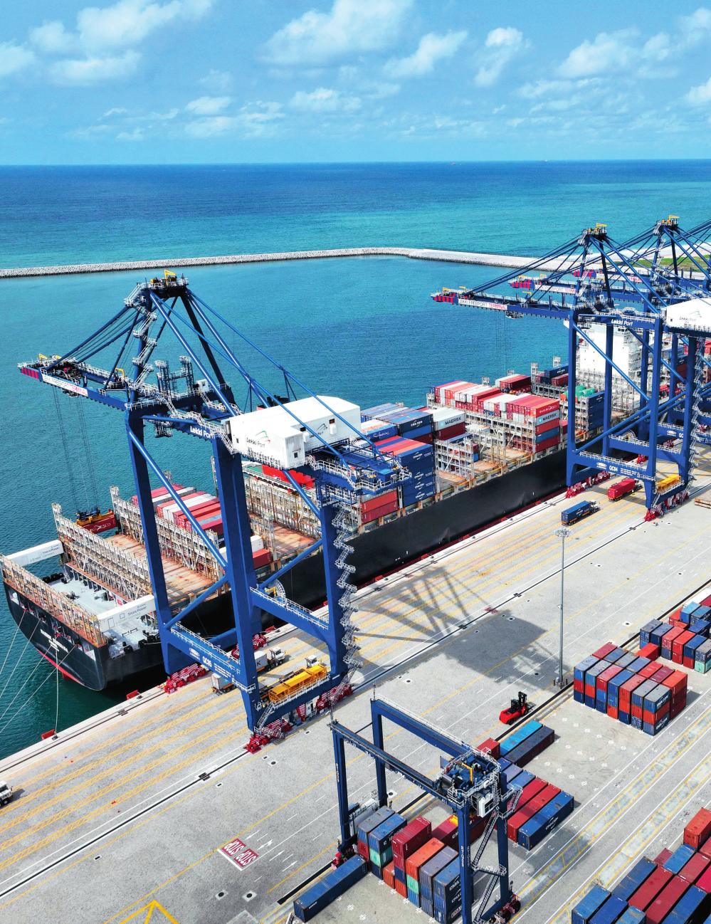 由中國港灣工程有限責任公司承建的尼日利亞萊基深水港位于中尼合作建設的拉各斯萊基自貿區(qū)內,是尼日利亞首個現代化深水港和最大港口。圖為一艘貨輪在尼日利亞拉各斯萊基深水港裝卸集裝箱(2024 年 3 月 11 日攝)萊基港公司供圖