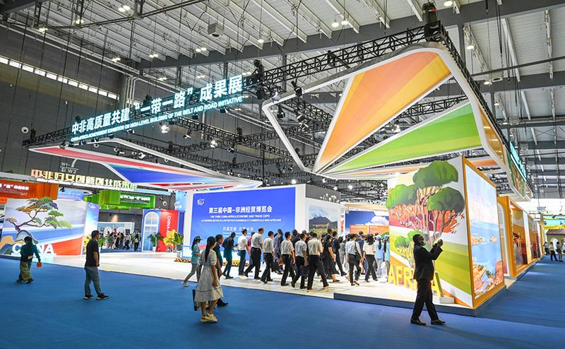 2023年6月29日,第三屆中國—非洲經貿博覽會在湖南長沙開幕。圖為參會嘉賓在長沙國際會展中心參觀中非高質量共建“一帶一路”成果展。