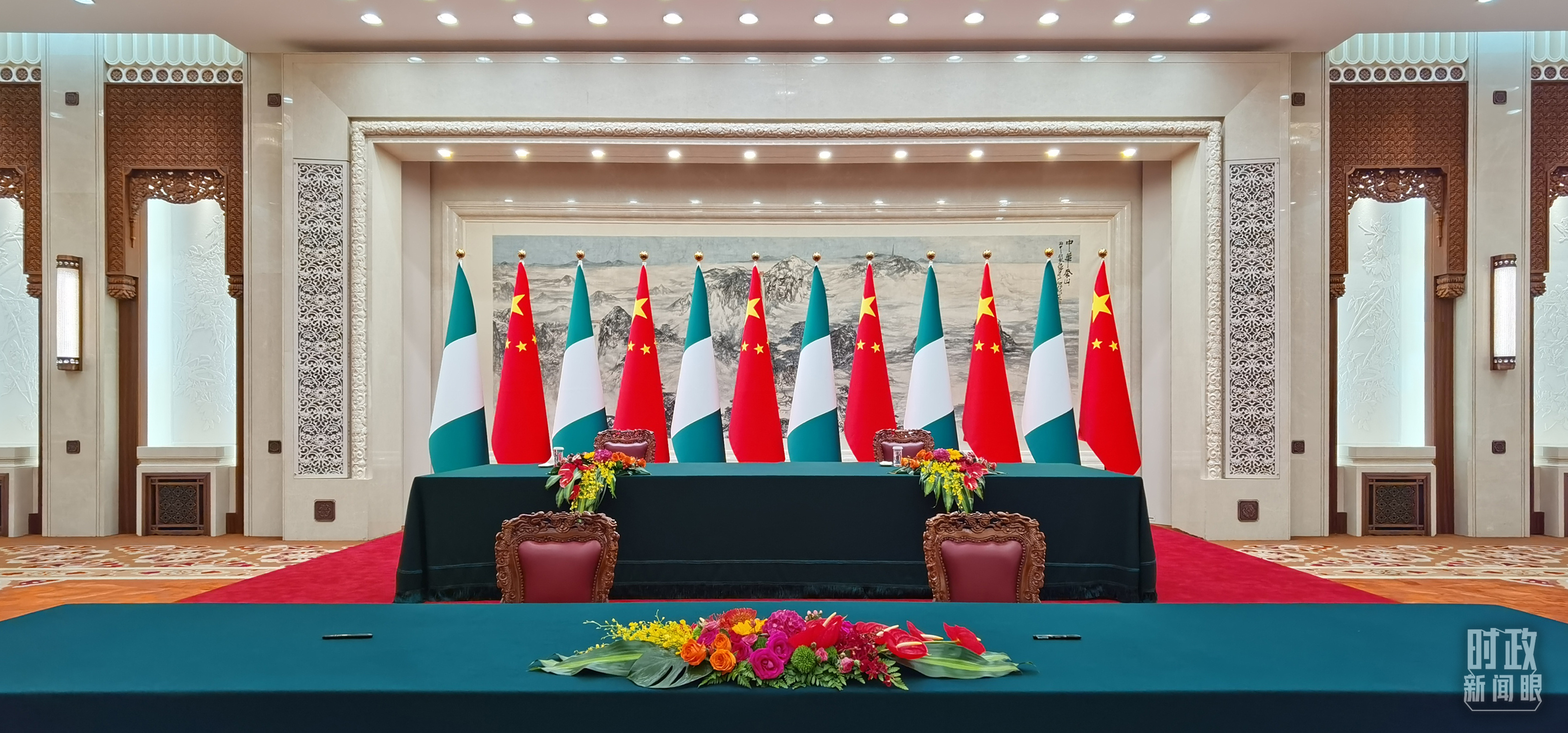 △中尼兩國元首在這里共同見證簽署多項雙邊合作文件,這是開始前的現(xiàn)場。(總臺央視記者郭鴻拍攝)