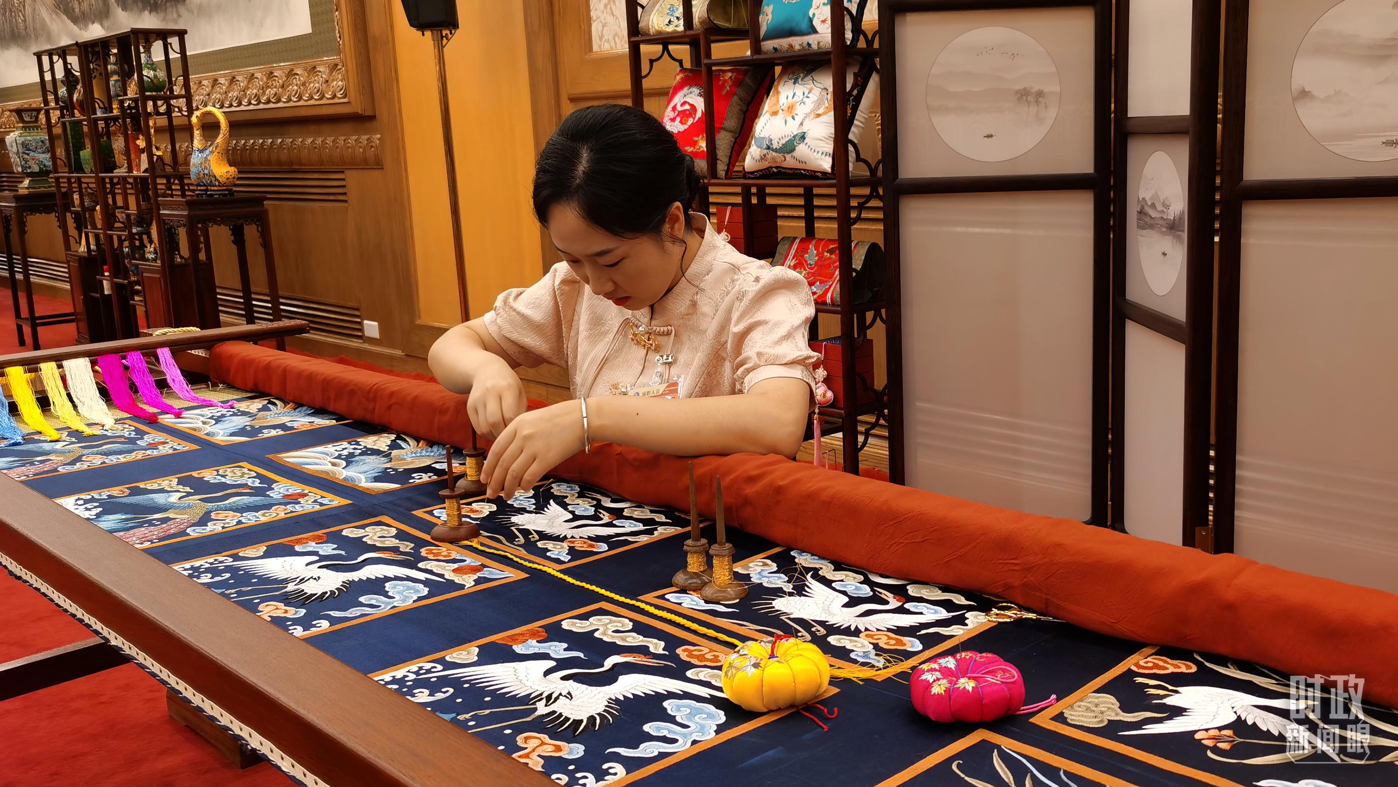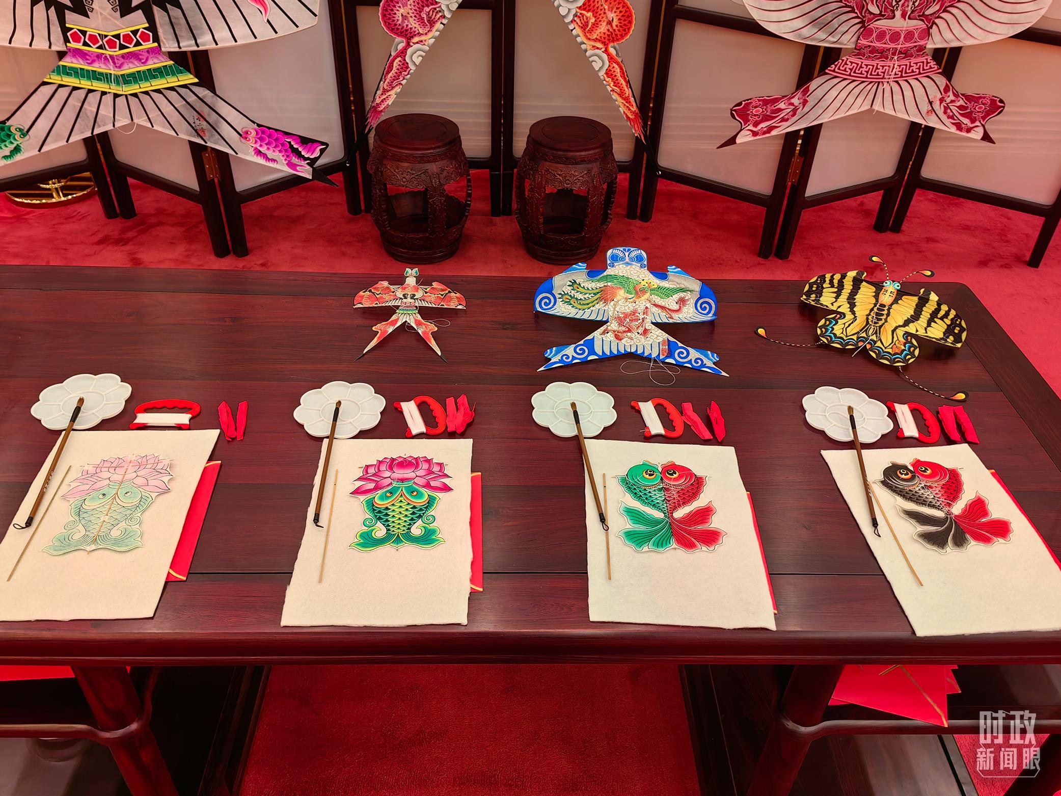 外賓休息室內(nèi)的非遺展示。(總臺(tái)央視記者王曉東、郭鴻拍攝)