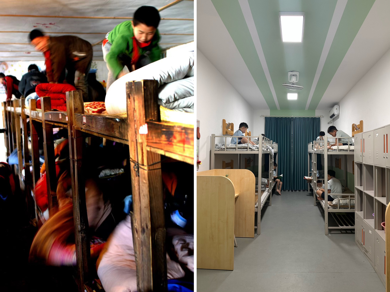 縉云縣東渡鎮(zhèn)長坑小學(xué)2005年以前的學(xué)生宿舍(左),以及現(xiàn)在的學(xué)生宿舍(右) 學(xué)校供圖
