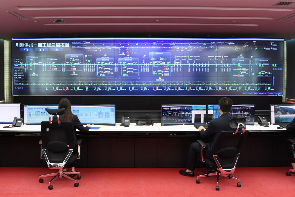 這是2021年9月6日在甘肅省引洮工程水資源利用中心調(diào)度中心拍攝的引洮供水一期工程調(diào)度現(xiàn)場。 新華社記者 范培珅 攝