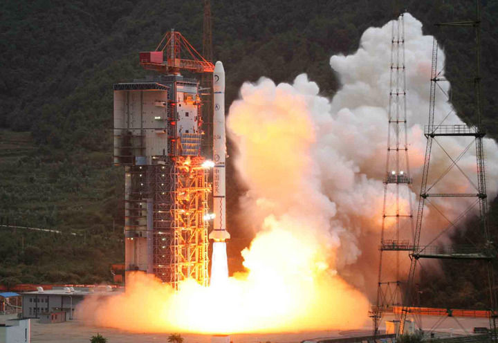 2007年10月24日,搭載著我國首顆探月衛(wèi)星嫦娥一號(hào)的長征三號(hào)甲運(yùn)載火箭在西昌衛(wèi)星發(fā)射中心三號(hào)塔架點(diǎn)火發(fā)射。新華社記者 李剛 攝