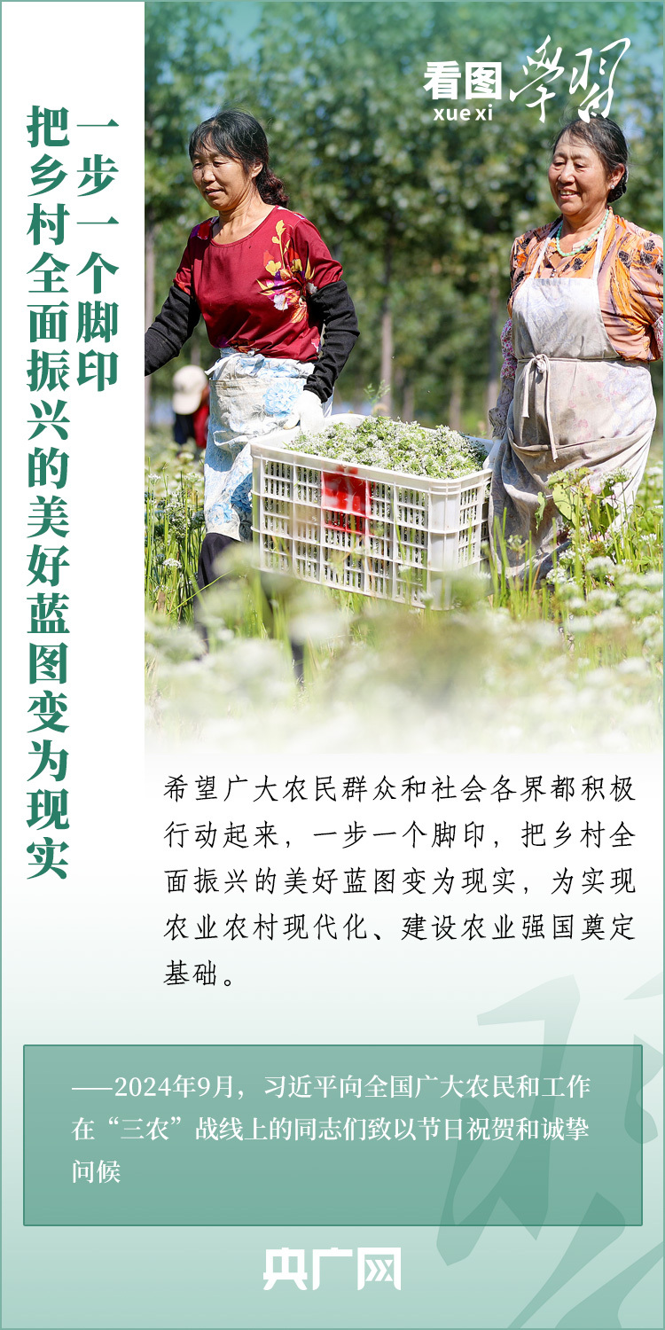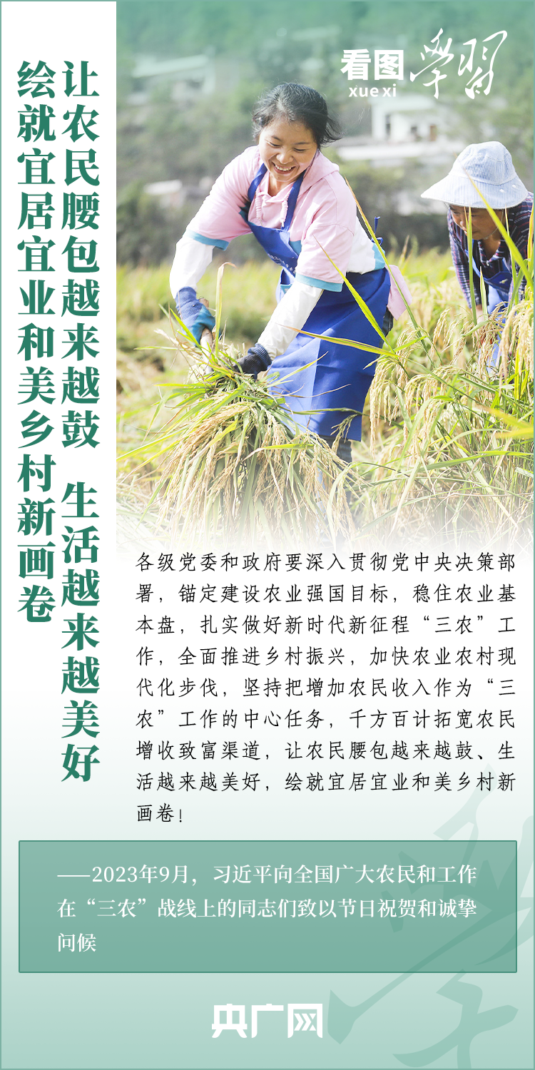 民族要復興,鄉(xiāng)村必振興。黨的十八大以來,每到各地考察調(diào)研,習近平總書記總會去農(nóng)村看一看,走進田間地頭,和農(nóng)民拉拉家常。總書記強調(diào),“建設宜居宜業(yè)和美鄉(xiāng)村是農(nóng)業(yè)強國的應有之義”,“要讓農(nóng)民腰包越來越鼓、生活越來越美好”。