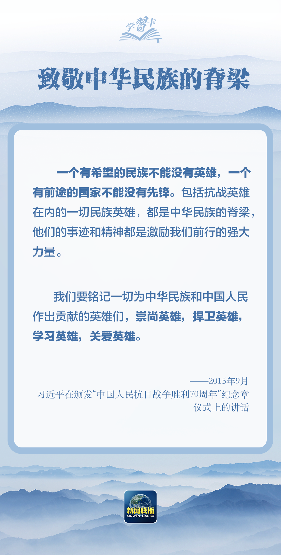 英雄烈士,是習(xí)近平總書記心之所系、情之所牽??倳浽诙鄠€(gè)場(chǎng)合深情講述英烈故事,引導(dǎo)全社會(huì)崇尚英雄、捍衛(wèi)英雄、學(xué)習(xí)英雄、關(guān)愛英雄。