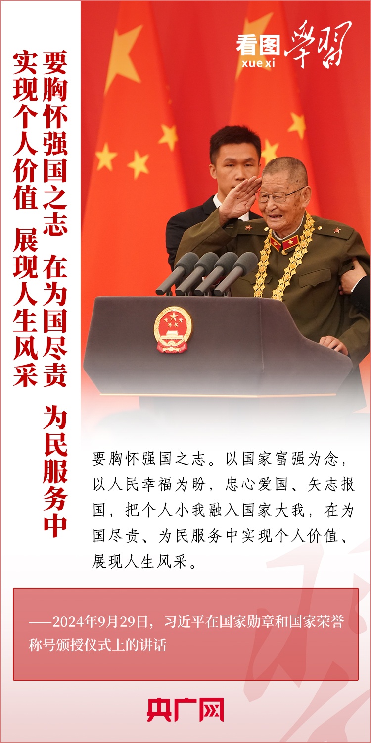 9月29日,中華人民共和國(guó)國(guó)家勛章和國(guó)家榮譽(yù)稱號(hào)頒授儀式在北京舉行,習(xí)近平總書(shū)記向國(guó)家勛章和國(guó)家榮譽(yù)稱號(hào)獲得者頒授勛章獎(jiǎng)?wù)虏l(fā)表重要講話??倳?shū)記強(qiáng)調(diào),全黨全國(guó)各族人民要以英雄模范為榜樣,團(tuán)結(jié)奮進(jìn)、砥礪前行,匯聚起共襄強(qiáng)國(guó)盛舉的磅礴力量。一起來(lái)學(xué)習(xí)!