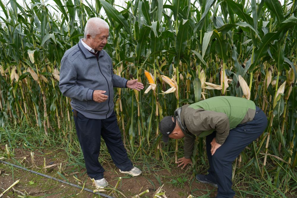 9月底,寧夏吳忠市利通區(qū)金積鎮(zhèn)梨花橋村,一片片籽實飽滿的青貯玉米挺立田間,大型收割機(jī)穿梭其中。66歲的農(nóng)業(yè)技術(shù)專家楊生明剝開玉米棒苞葉,檢查籽粒成熟情況,收完玉米,馬上就要搶種冬小麥,他負(fù)責(zé)技術(shù)指導(dǎo)。
