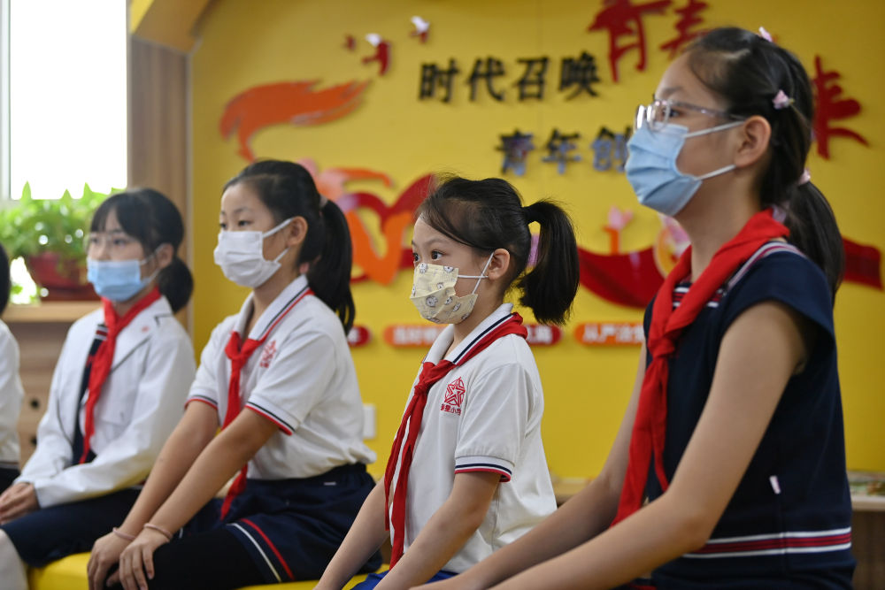 天津市和平區(qū)新星小學學生在觀看電影《我和我的祖國》(2021年9月28日攝)。
