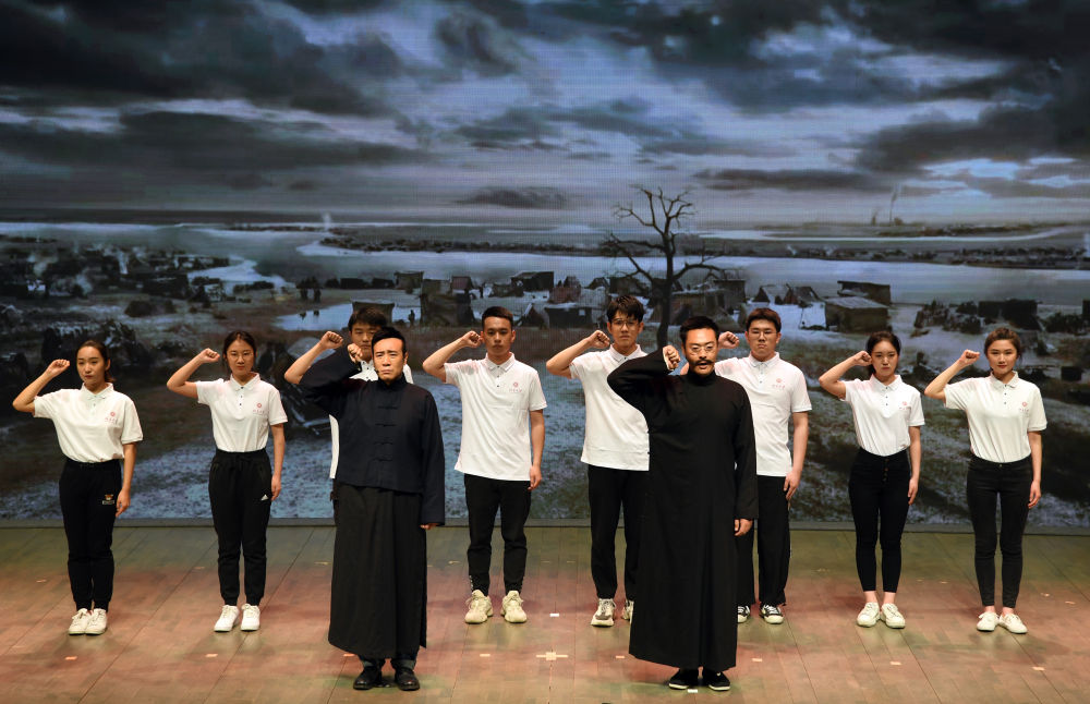電視劇《覺醒年代》主創(chuàng)團隊走進北京大學,劇中主要演員與北大學生同臺演出(2021年4月20日攝)。