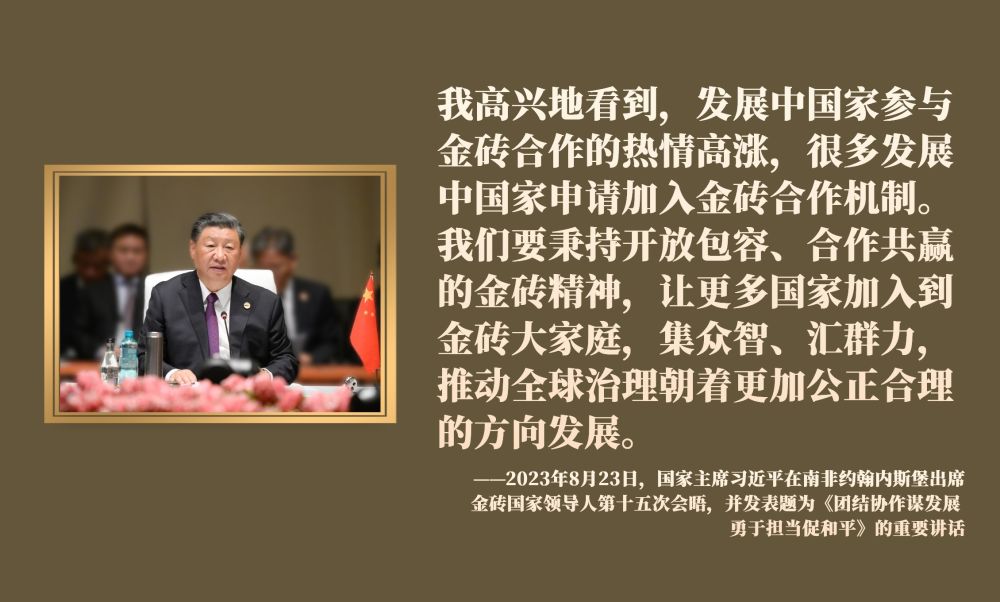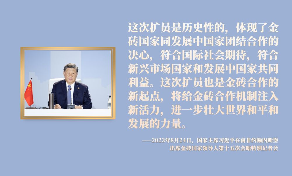 近年來,習近平主席圍繞擴大金磚合作、推進金磚擴員作出一系列重要論述。