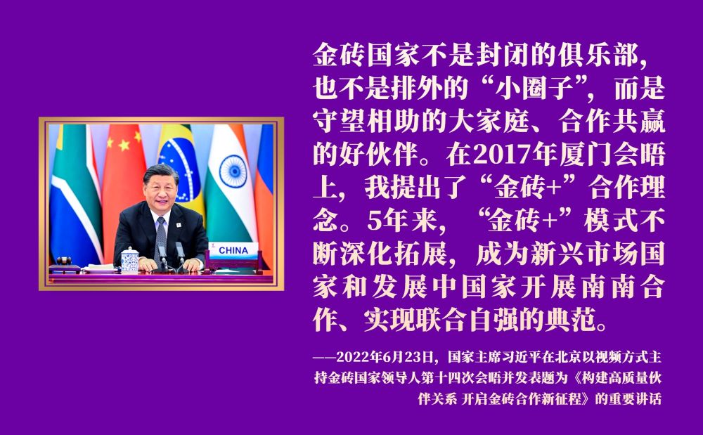 面向未來,金磚國家敞開大門謀發(fā)展、張開懷抱促合作。中國將攜手金磚伙伴,推動“大金磚合作”不斷取得新成果。