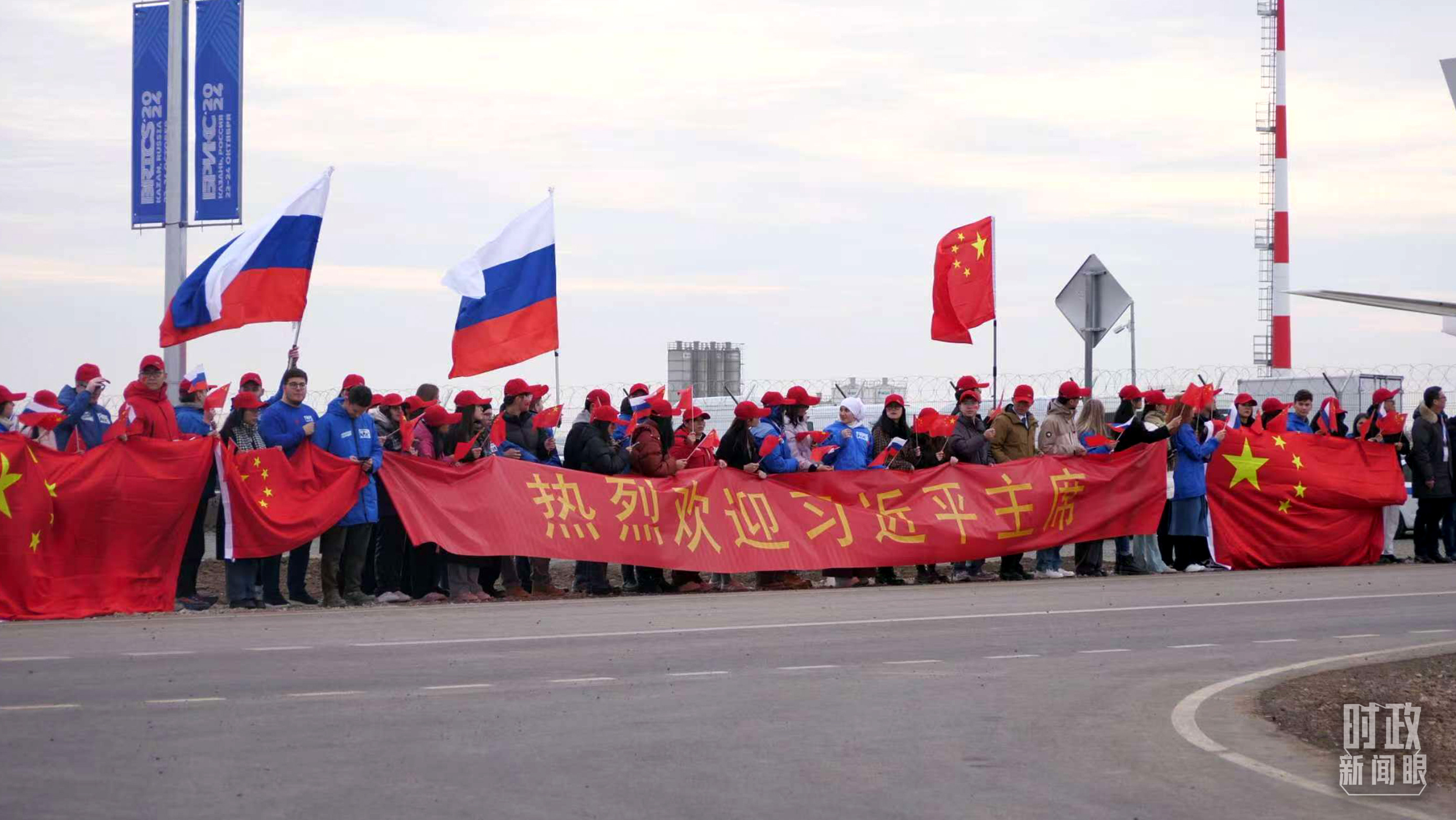 俄羅斯喀山各界人士揮舞中俄兩國(guó)國(guó)旗,歡迎習(xí)主席到訪。(總臺(tái)記者蔣泓橋拍攝)