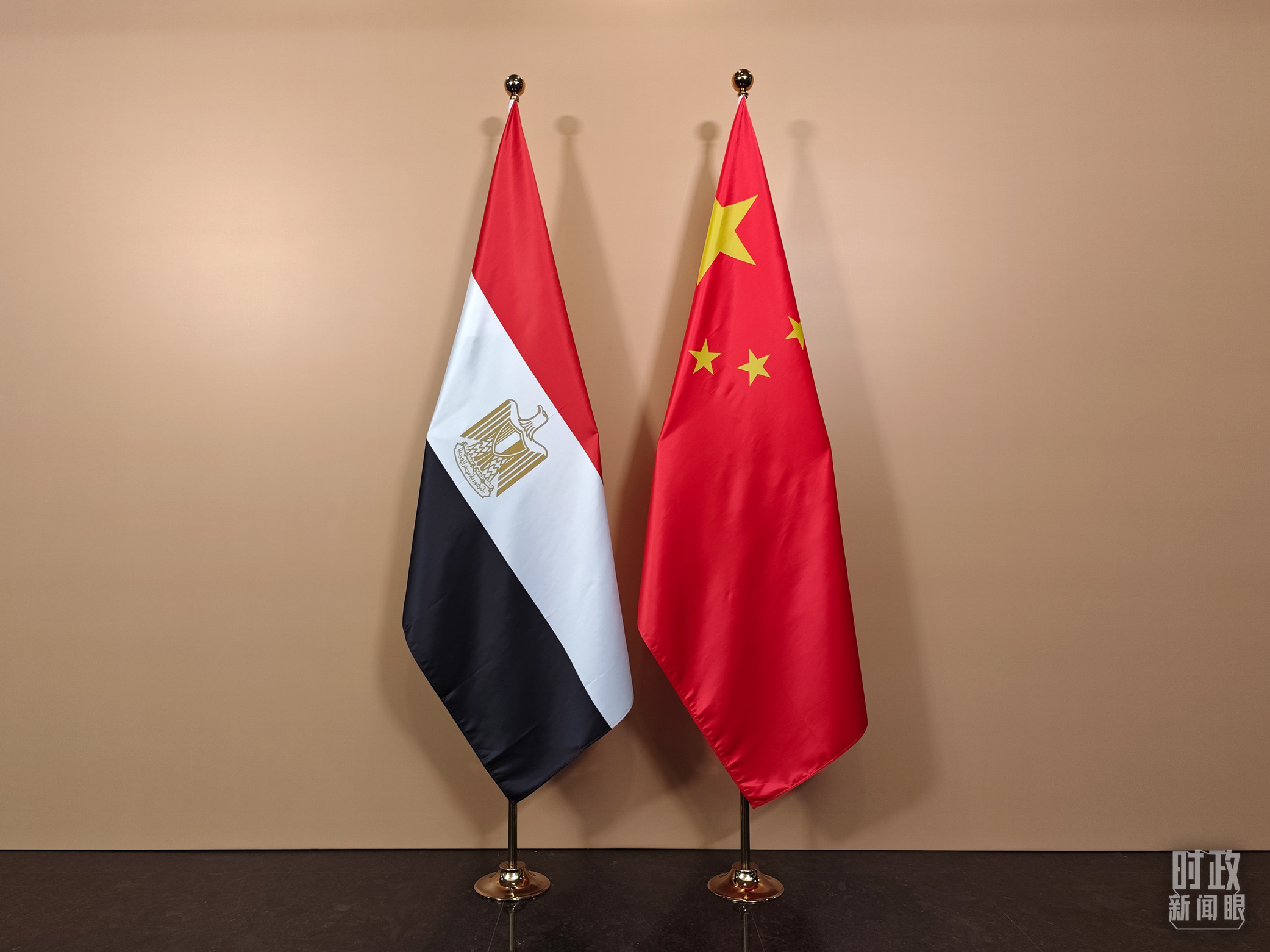 會(huì)見(jiàn)廳外的中國(guó)埃及兩國(guó)國(guó)旗。(總臺(tái)央視記者彭漢明拍攝)