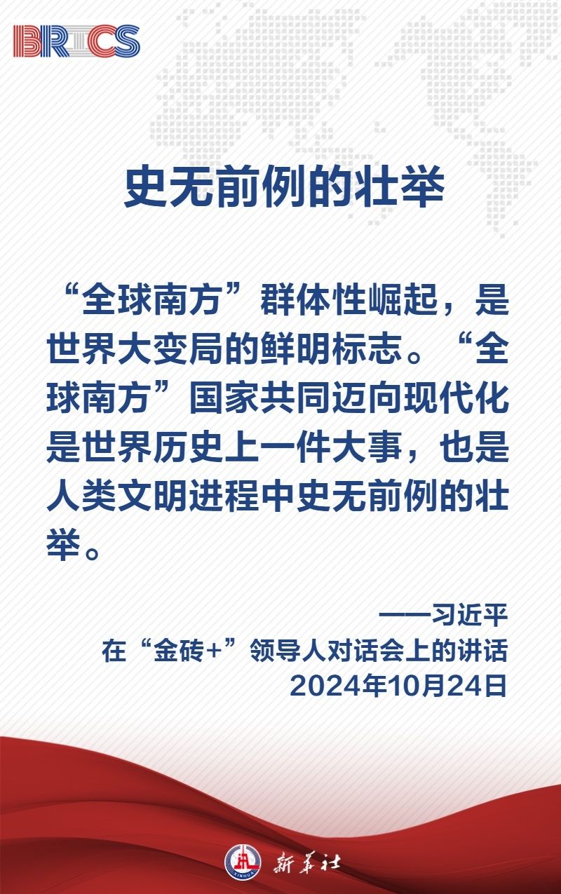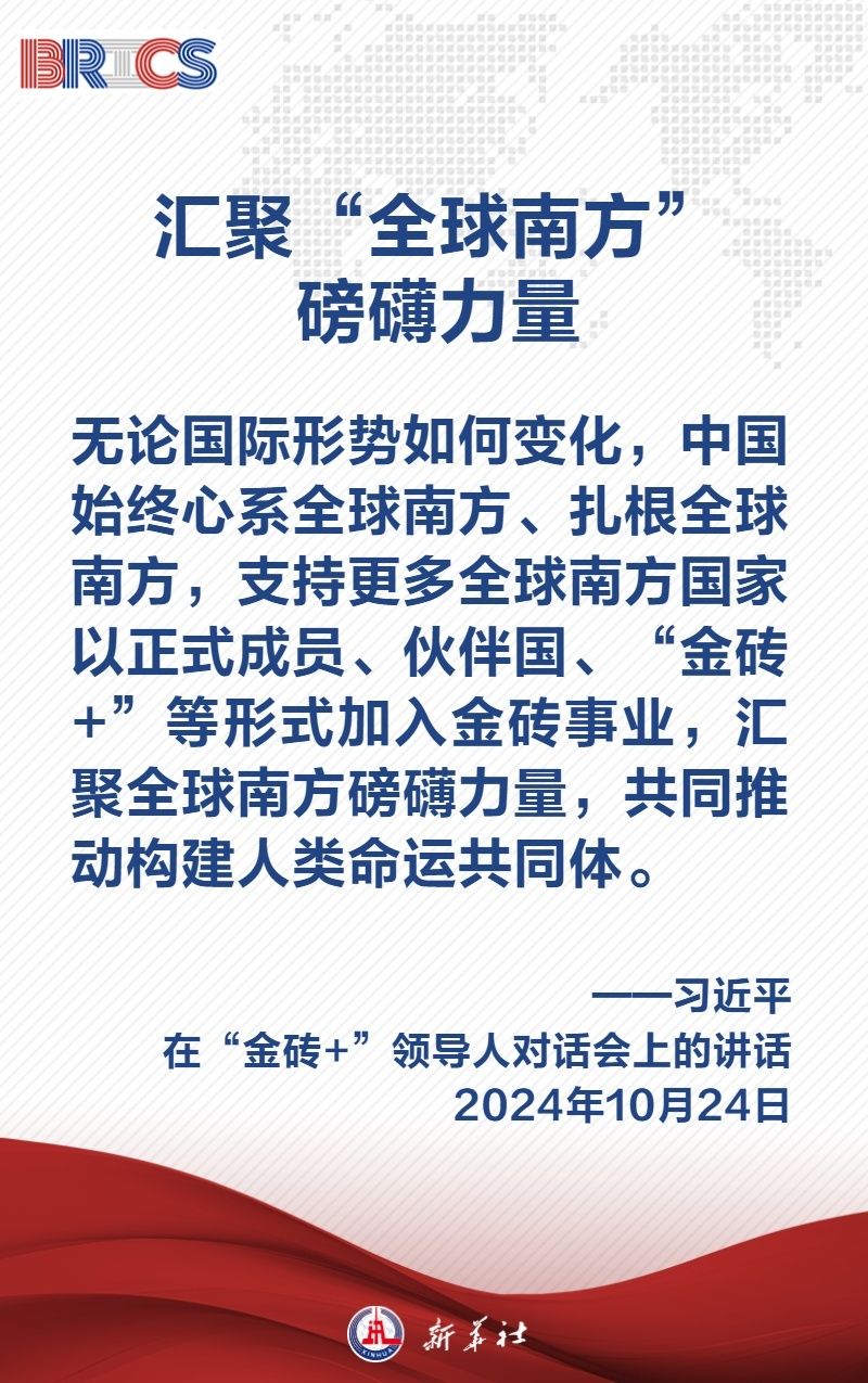 當(dāng)?shù)貢r(shí)間10月24日上午,國(guó)家主席習(xí)近平在喀山會(huì)展中心出席“金磚+”領(lǐng)導(dǎo)人對(duì)話會(huì)并發(fā)表題為《匯聚“全球南方”磅礴力量 共同推動(dòng)構(gòu)建人類命運(yùn)共同體》的重要講話,闡明中國(guó)主張——