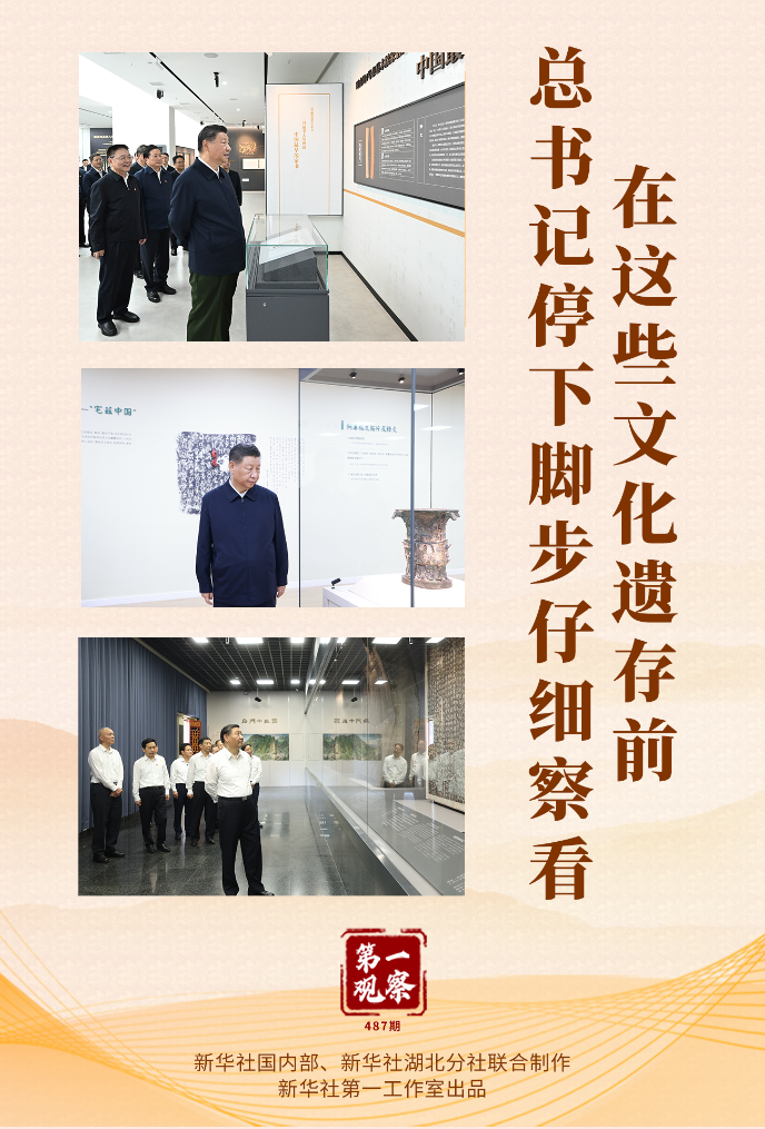 4日下午至5日上午,習(xí)近平總書記先后在湖北省孝感市、咸寧市考察。在孝感市,習(xí)近平總書記考察了云夢縣博物館,了解當(dāng)?shù)丶訌娢奈锉Wo研究利用等情況。