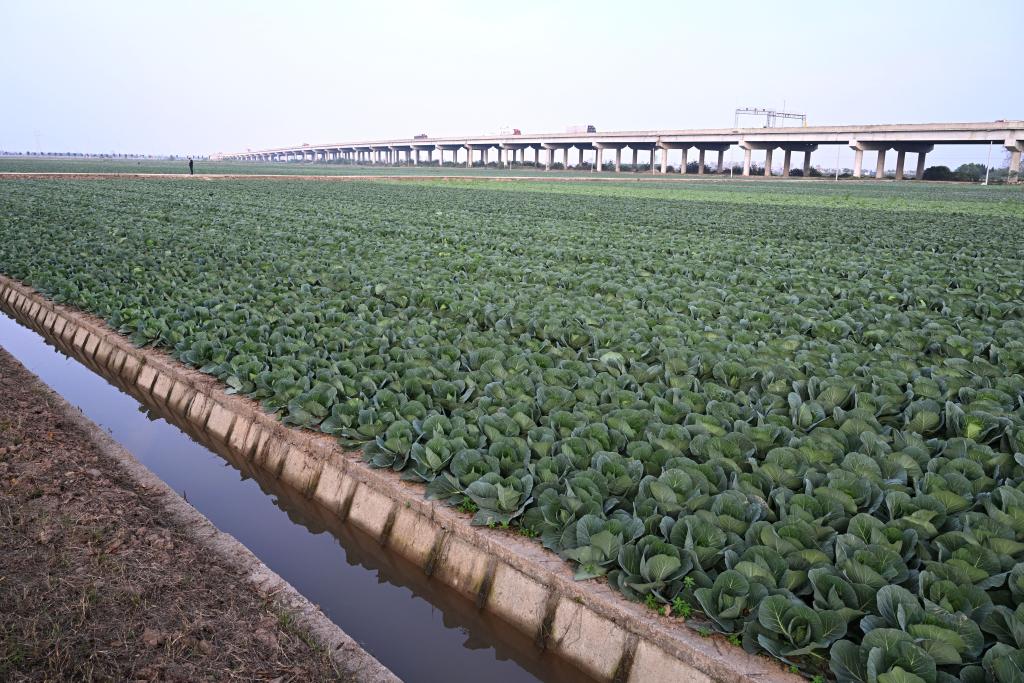 來(lái)到嘉魚縣潘家灣鎮(zhèn)的蔬菜種植基地,放眼望去,滿目皆綠。菜農(nóng)們?cè)诿β抵M(jìn)行松土、除草。連片的包菜、白菜鮮翠欲滴,長(zhǎng)勢(shì)喜人。