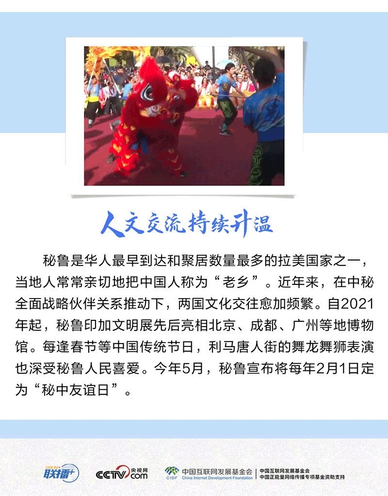 近年來,在雙方共同努力下,中秘各領域合作取得豐碩成果,中秘這對跨洋“友鄰”的“距離”越來越近。央視網(wǎng)《聯(lián)播+》特推出長圖,與您一同了解。