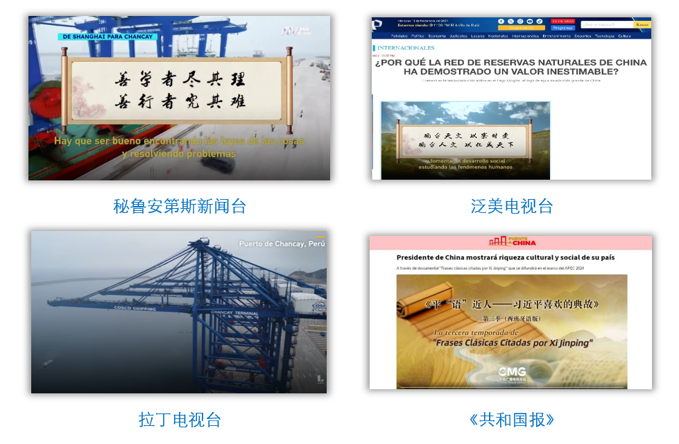 在中國國家主席習近平應秘魯共和國總統(tǒng)博魯阿爾特邀請,赴利馬出席亞太經合組織第三十一次領導人非正式會議并對秘魯進行國事訪問之際,由中國中央廣播電視總臺制作的《平“語”近人——習近平喜歡的典故》第三季(西班牙語版),將于當?shù)貢r間11月14日起在秘魯國家廣播電視臺、秘魯電視聯(lián)播網(wǎng)、秘魯廣播節(jié)目集團電視端等多平臺落地播出。當?shù)囟嗉抑髁髅襟w對節(jié)目落播進行預告,引發(fā)秘魯各界普遍期待和廣泛關注。