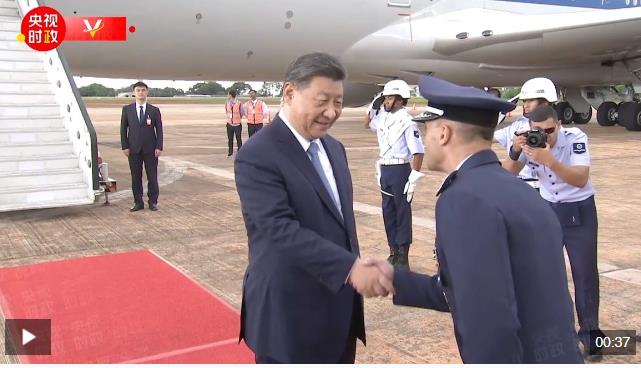 當地時間11月19日下午,國家主席習近平乘專機抵達巴西利亞,開始對巴西進行國事訪問。
