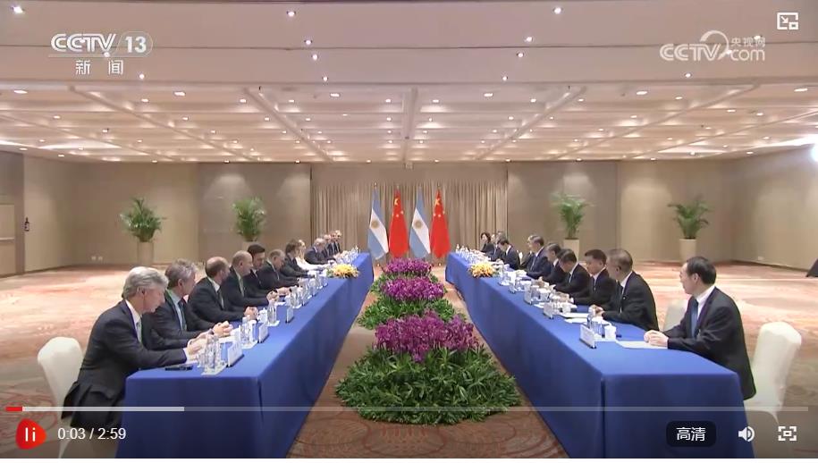 習(xí)近平指出,中阿建交半個多世紀(jì)以來,雙方堅持相互尊重、平等相待、互利共贏。中國對阿政策始終面向阿根廷全體人民,中阿合作也造福全體人民。今年是中阿建立全面戰(zhàn)略伙伴關(guān)系10周年,兩國關(guān)系處在承前啟后、繼往開來的重要節(jié)點。中方珍視兩國人民傳統(tǒng)友誼,支持阿方通過改革探索符合本國國情的發(fā)展道路,愿同阿方一道,推動中阿全面戰(zhàn)略伙伴關(guān)系長期穩(wěn)定發(fā)展,更好助力各自國家發(fā)展。