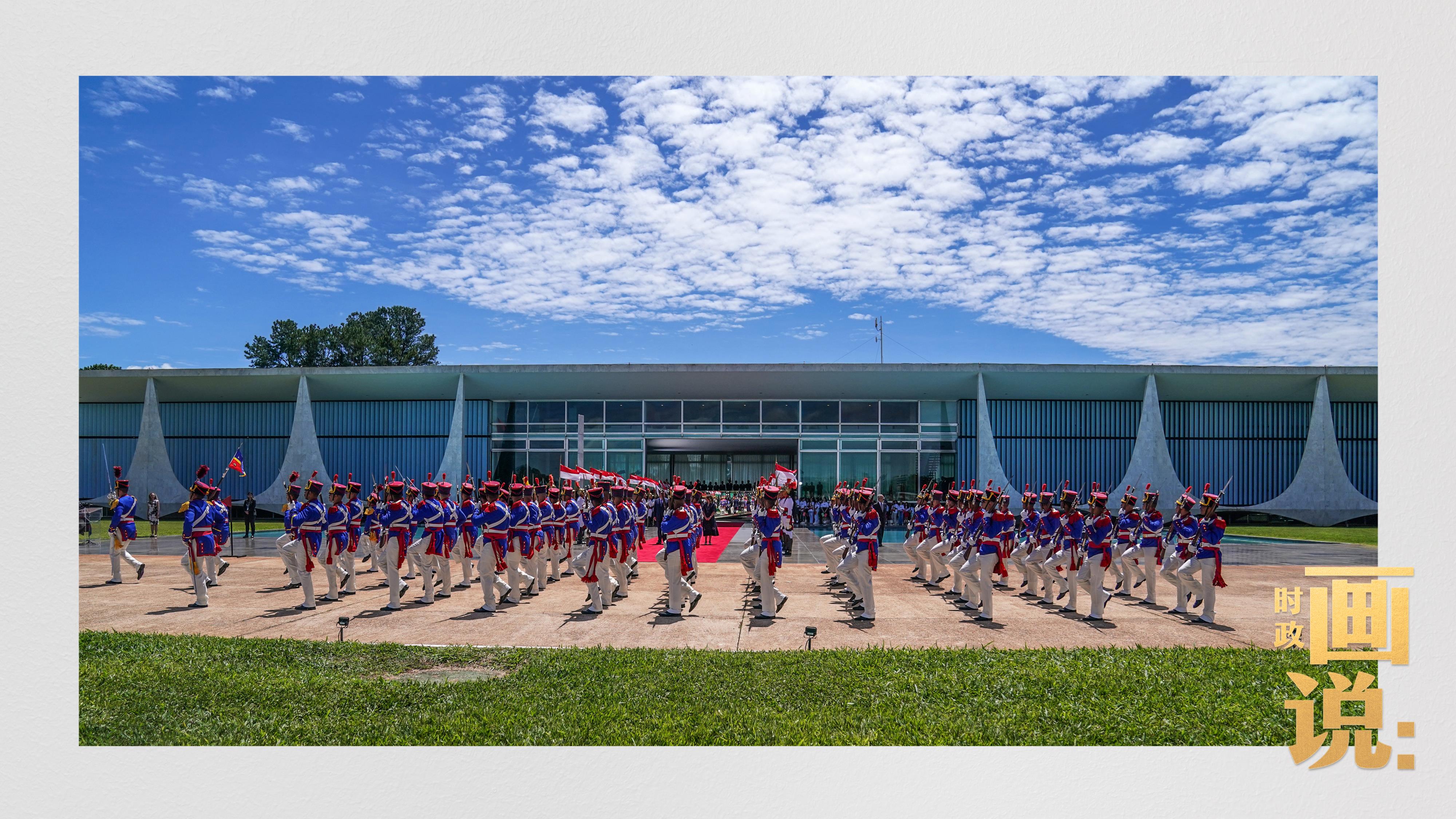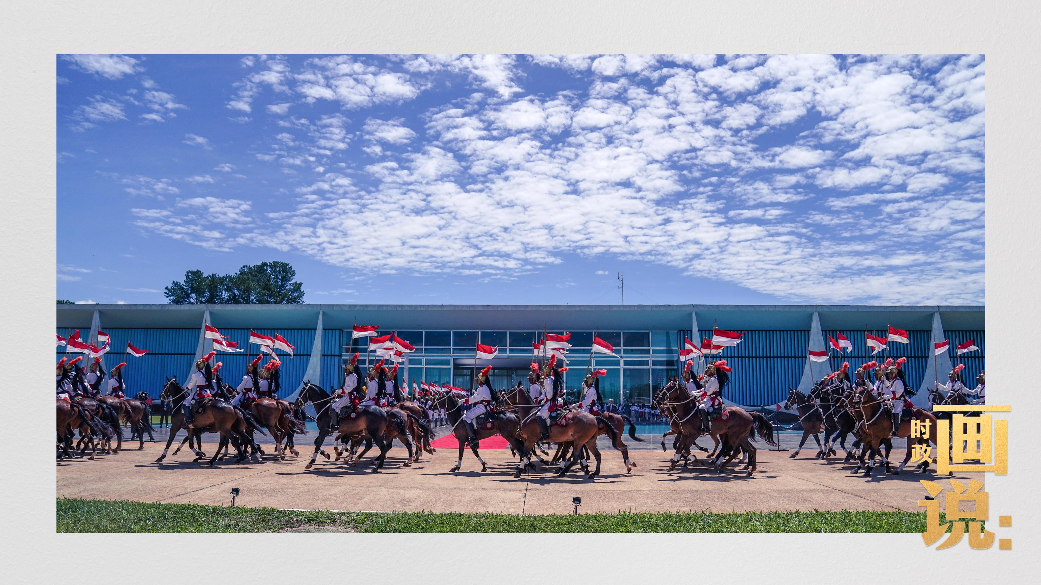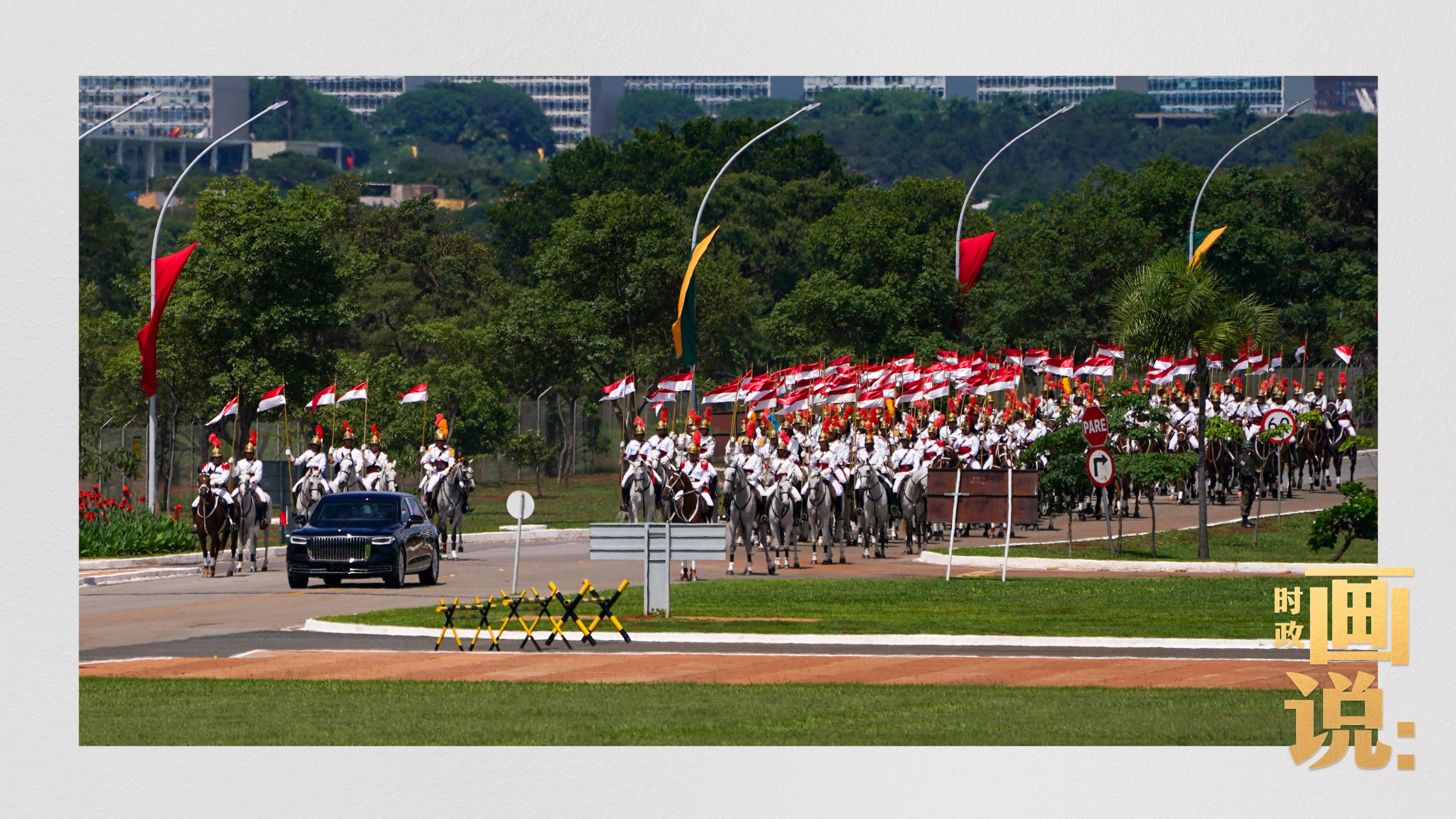 騎兵護(hù)衛(wèi)習(xí)近平主席專(zhuān)車(chē)抵達(dá)儀式現(xiàn)場(chǎng),巴西藝術(shù)家用中文深情唱響中國(guó)經(jīng)典民歌《我的祖國(guó)》,現(xiàn)場(chǎng)氣氛隆重?zé)崃摇?/p>