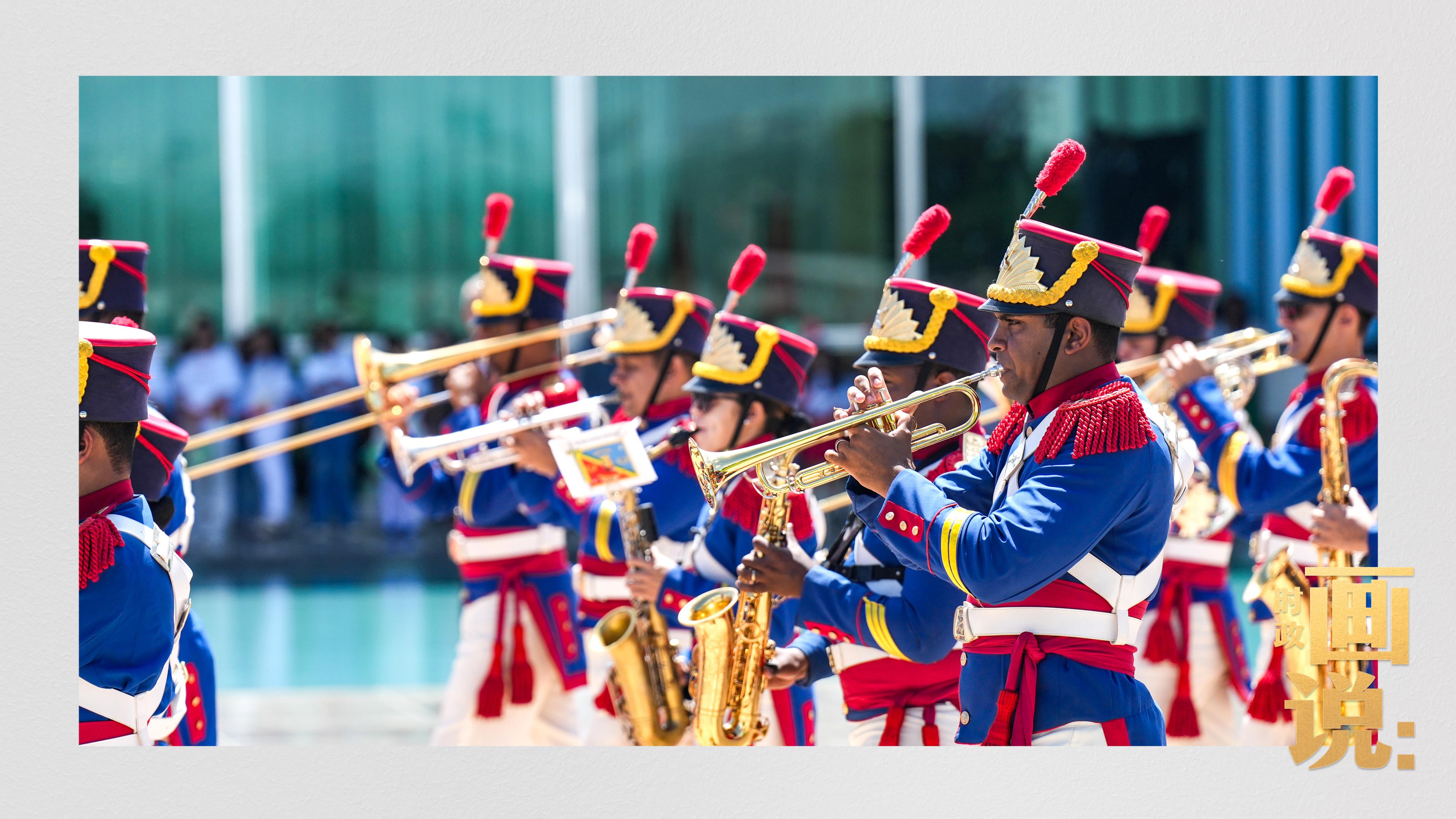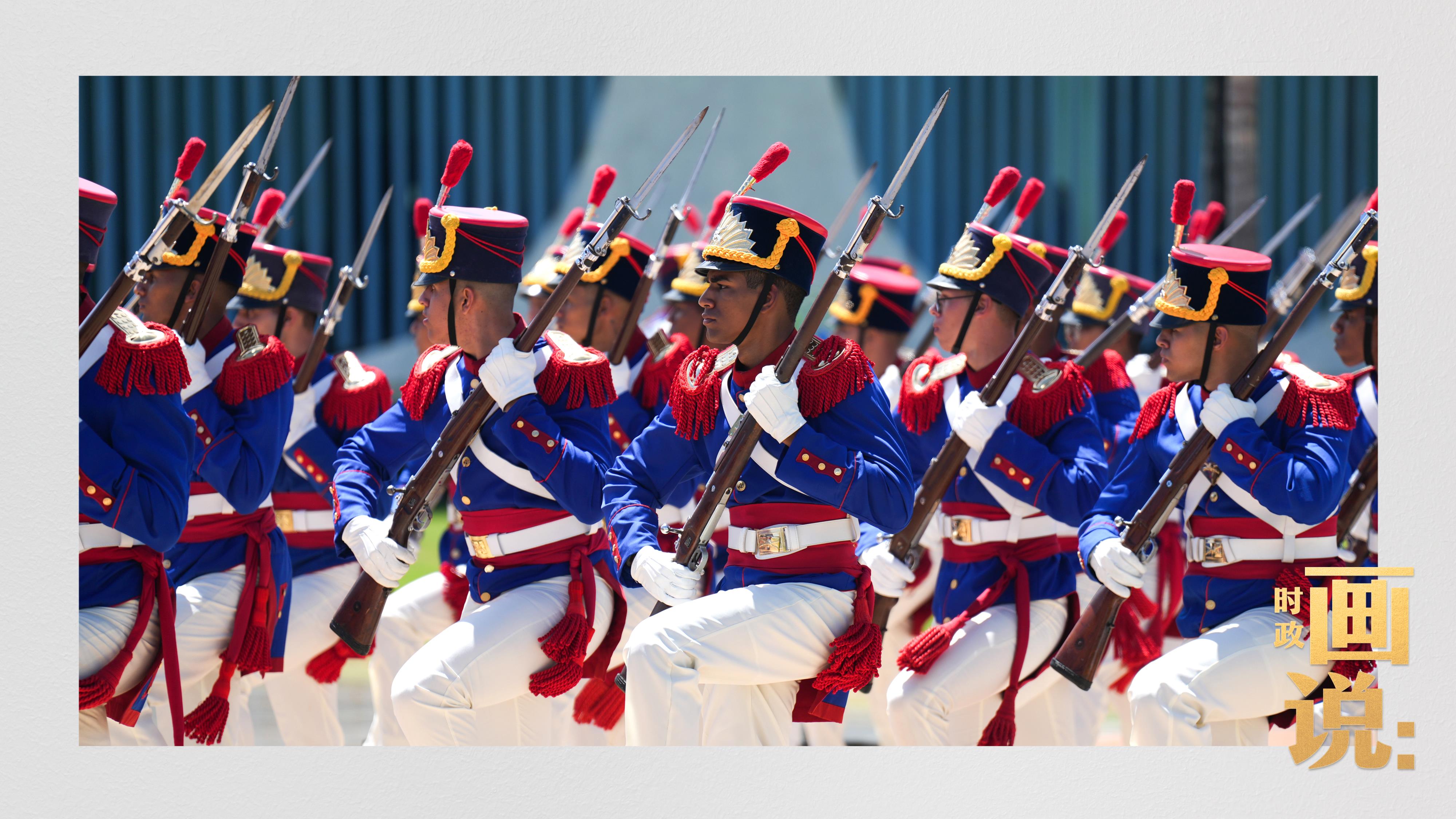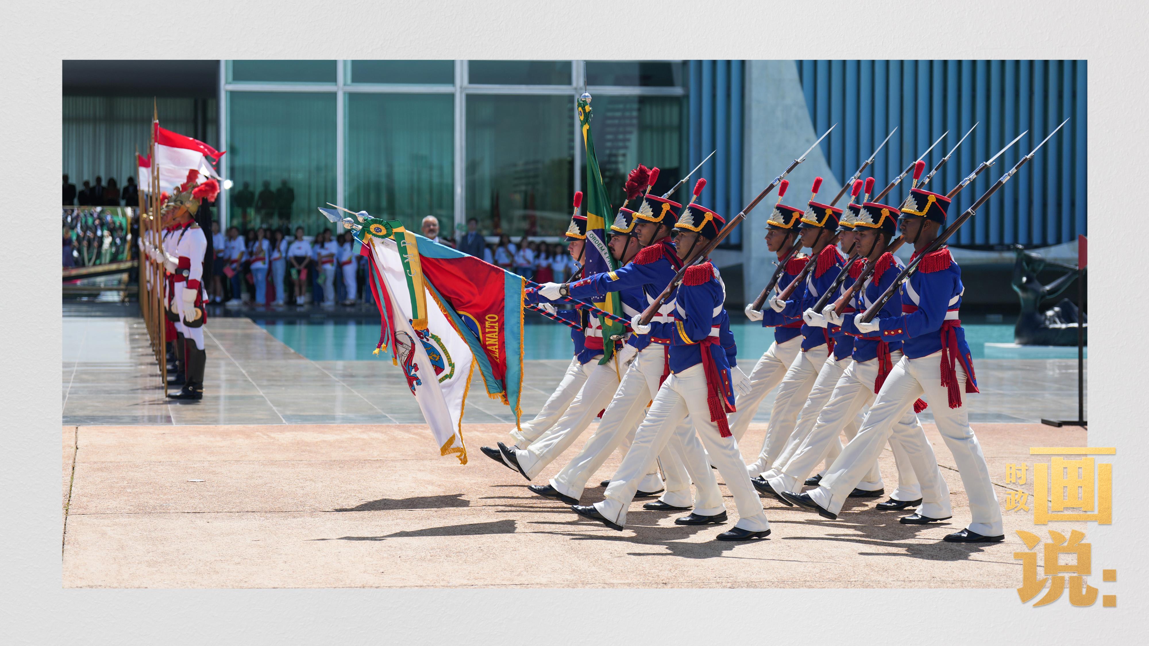 騎兵護(hù)衛(wèi)習(xí)近平主席專(zhuān)車(chē)抵達(dá)儀式現(xiàn)場(chǎng),巴西藝術(shù)家用中文深情唱響中國(guó)經(jīng)典民歌《我的祖國(guó)》,現(xiàn)場(chǎng)氣氛隆重?zé)崃摇?/p>