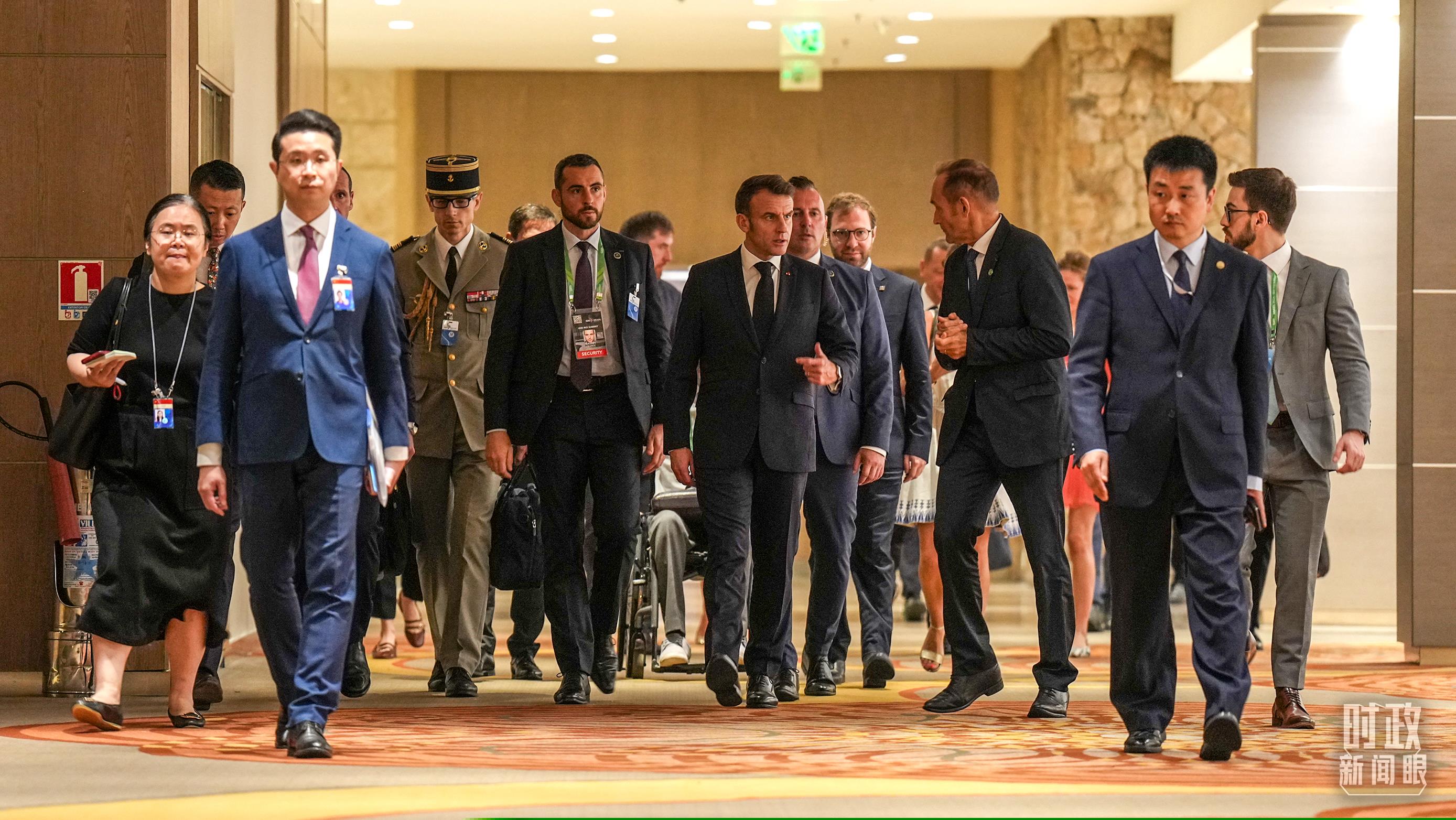 法國總統(tǒng)馬克龍前往會場。(總臺記者李晉拍攝)