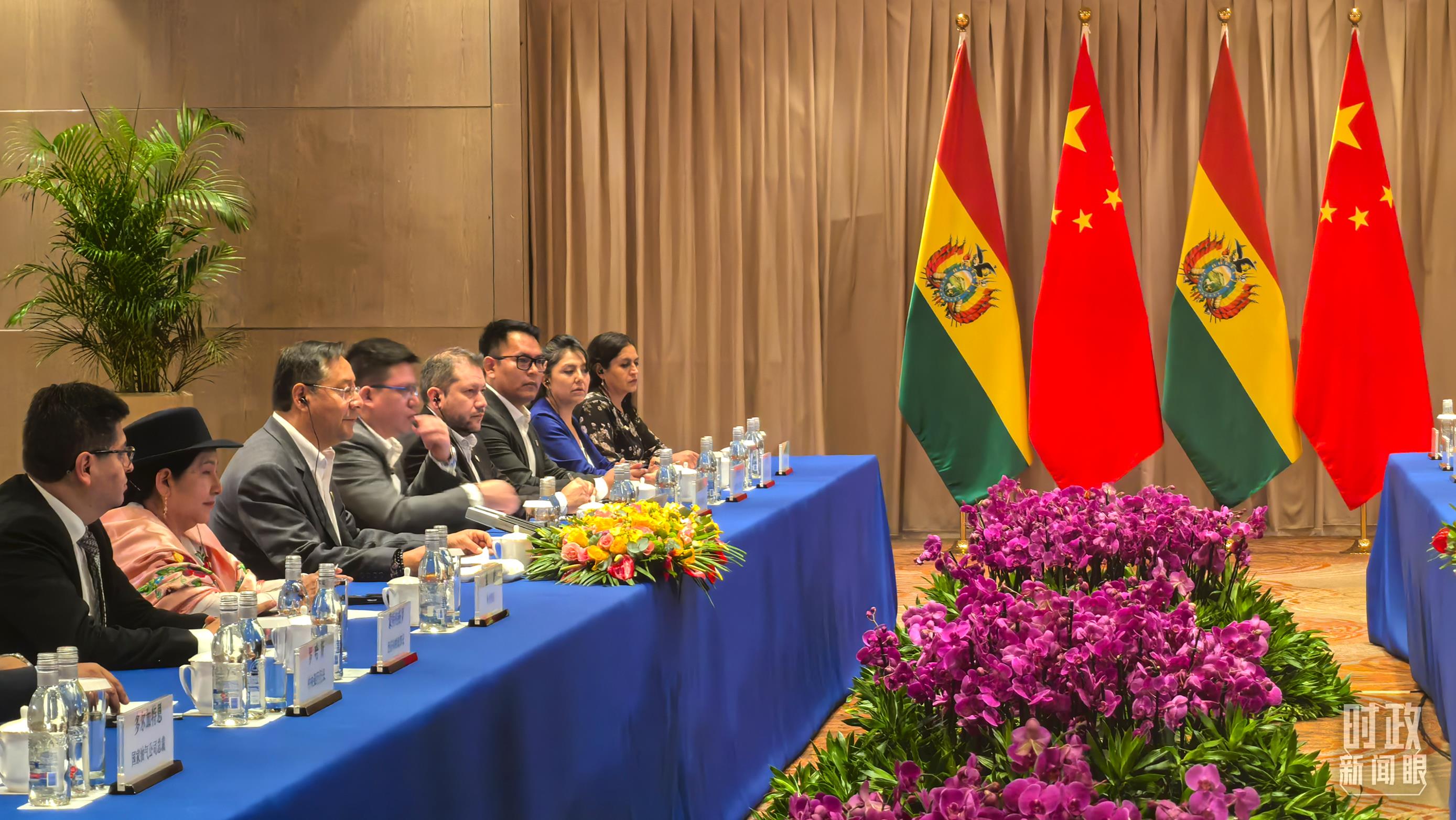 習(xí)主席會見玻利維亞總統(tǒng)阿爾塞現(xiàn)場。(總臺央廣記者潘毅拍攝)