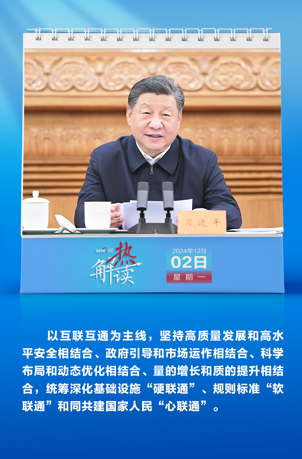 “統(tǒng)籌深化基礎(chǔ)設(shè)施‘硬聯(lián)通’、規(guī)則標(biāo)準(zhǔn)‘軟聯(lián)通’和同共建國家人民‘心聯(lián)通’”,“完善‘硬聯(lián)通’、‘軟聯(lián)通’、‘心聯(lián)通’協(xié)調(diào)推進機制”。12月2日,習(xí)近平總書記在第四次“一帶一路”建設(shè)工作座談會上對深化三個“聯(lián)通”再作部署。