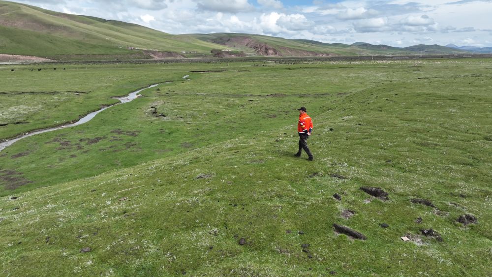9月24日,生態(tài)管護(hù)員那瓦才郎在草場上巡護(hù)。(受訪者供圖)