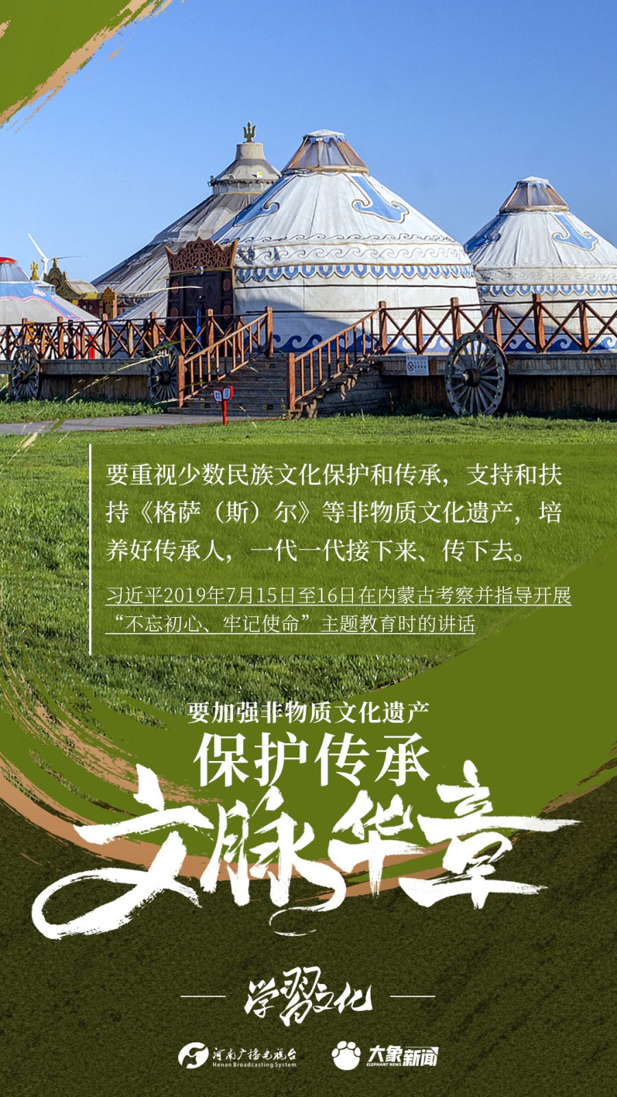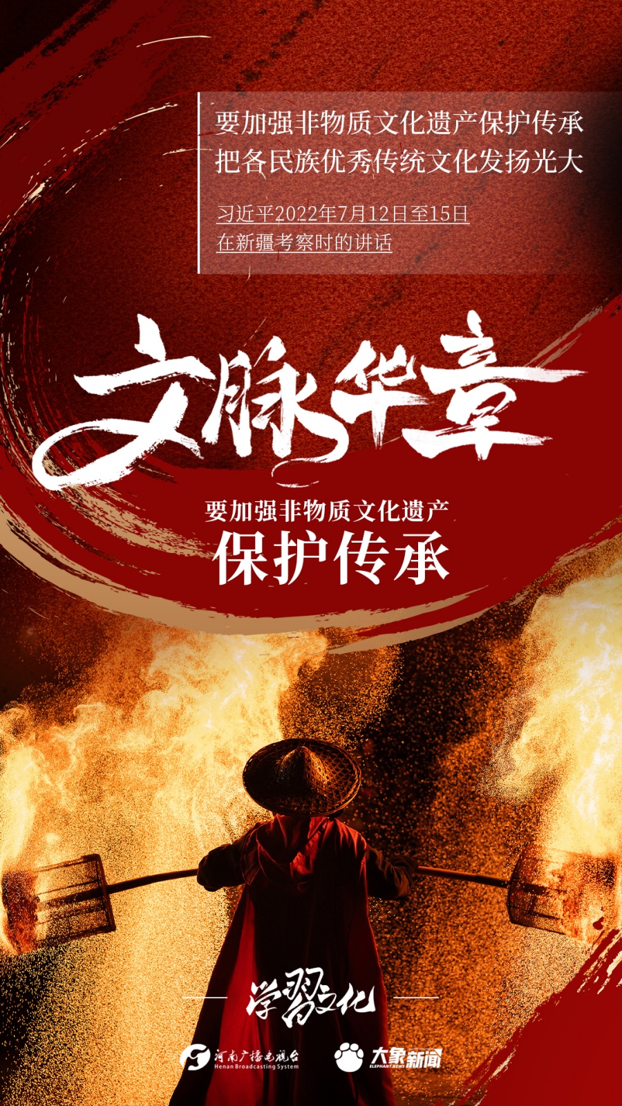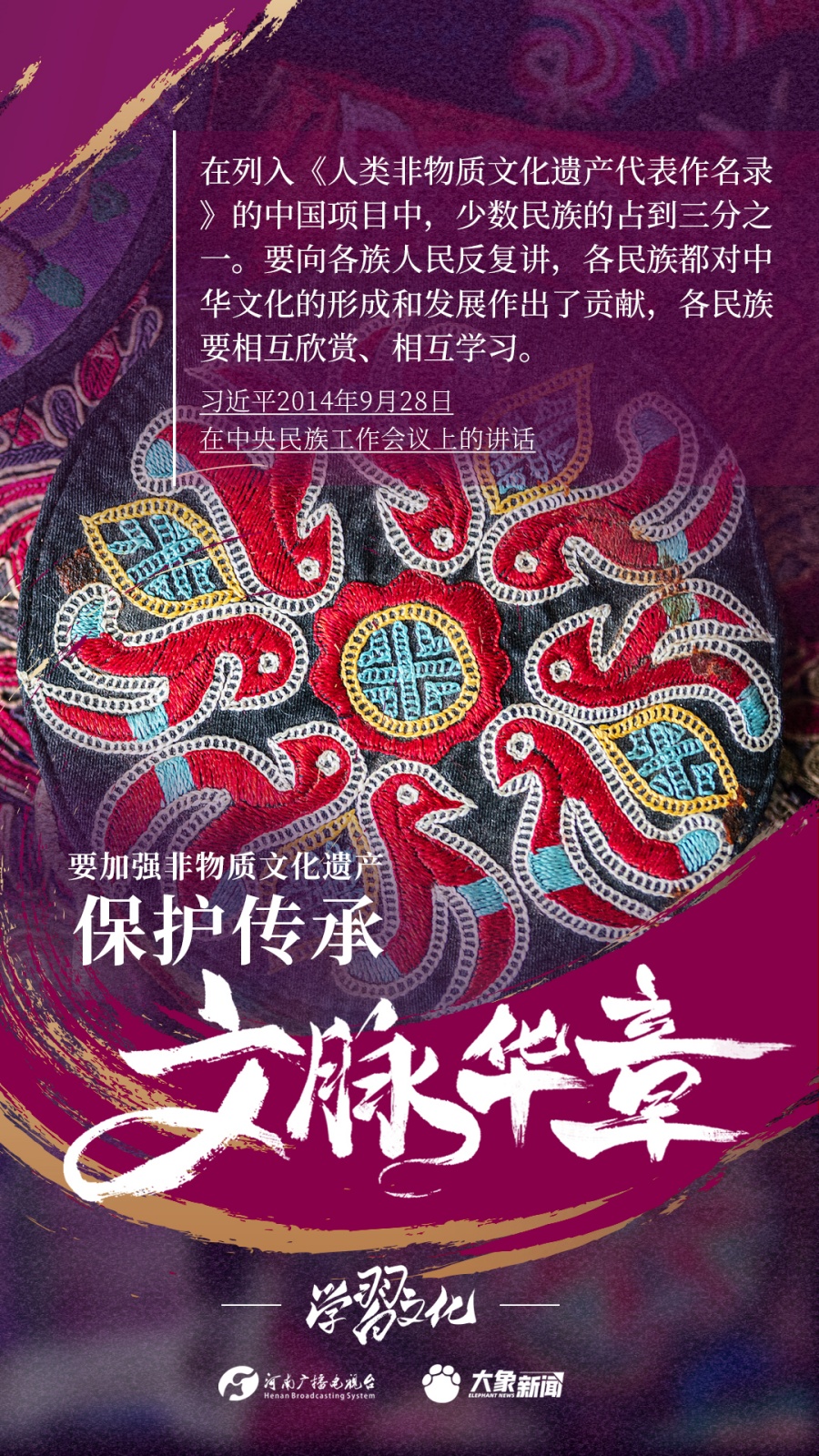 非物質(zhì)文化遺產(chǎn)是中華優(yōu)秀傳統(tǒng)文化的重要組成部分,是中華文明綿延傳承的生動(dòng)見證,是我國各族人民寶貴的精神財(cái)富。習(xí)近平總書記十分關(guān)心非物質(zhì)文化遺產(chǎn)的保護(hù)傳承,多次強(qiáng)調(diào)“要扎實(shí)做好非物質(zhì)文化遺產(chǎn)的系統(tǒng)性保護(hù)”“培養(yǎng)好傳承人”等。大象新聞為您梳理,邀您一起學(xué)習(xí)、領(lǐng)悟、踐行。