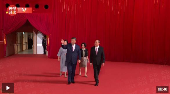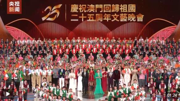 晚會最后,習近平同全場觀眾一起高唱《歌唱祖國》,祝愿偉大祖國繁榮富強,祝福澳門明天更加美好。習近平向全體演員和觀眾揮手致意,晚會氣氛被推向高潮,歌聲和掌聲匯成歡樂的海洋。