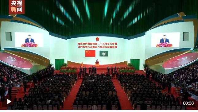 12月20日上午,慶祝澳門回歸祖國25周年大會暨澳門特別行政區(qū)第六屆政府就職典禮舉行。中共中央總書記、國家主席、中央軍委主席習(xí)近平出席并發(fā)表重要講話。