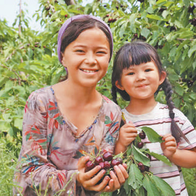 在中塔合建的吉薩爾櫻桃園,當(dāng)?shù)匦∨⒄故緞傉碌臋烟摇1緢?bào)記者 顏歡攝