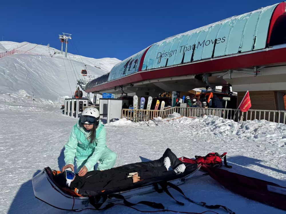 一次巡邏時,帕提曼看到一名雪友橫躺在雪道中間,雪板被甩出很遠(yuǎn),上前查看后發(fā)現(xiàn)其大腿骨折。她立即進(jìn)行夾板固定、紗布包扎等操作,隨后協(xié)助轉(zhuǎn)運(yùn)傷員。